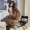 Foto Real em Estoque Outono e Inverno Novo Casaco de Pelúcia Falso de Raposa Casaco Corta-vento Manga Morcego Com Capuz Casaco de Couro
