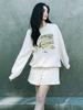 Sudadera Blanca Redonda de Dibujos Animados Estilo Estrella de Zhou Jieqiong para Mujer 2025 Otoño e Invierno Forrada de Polar Casual Versátil Chaqueta Superior