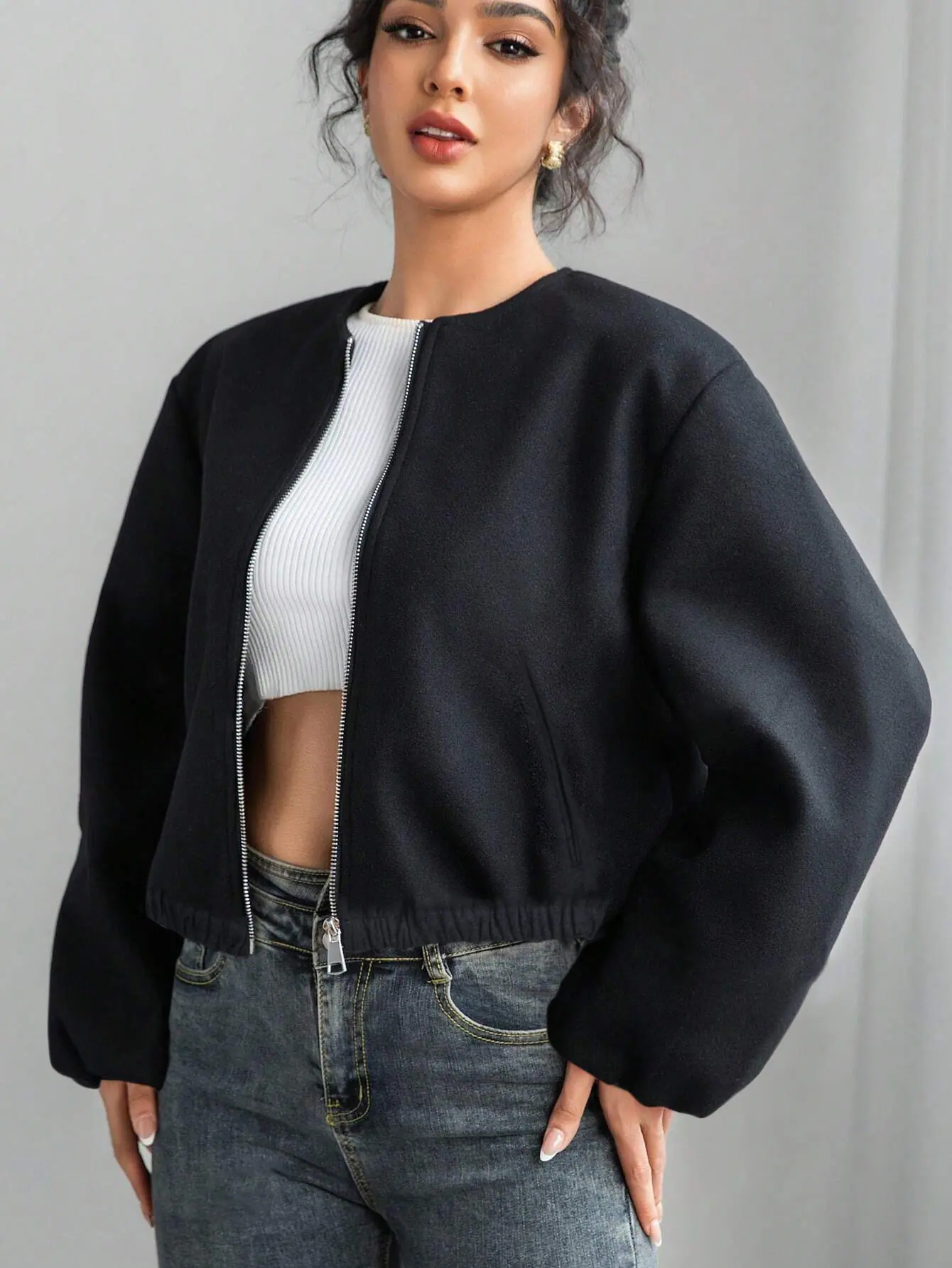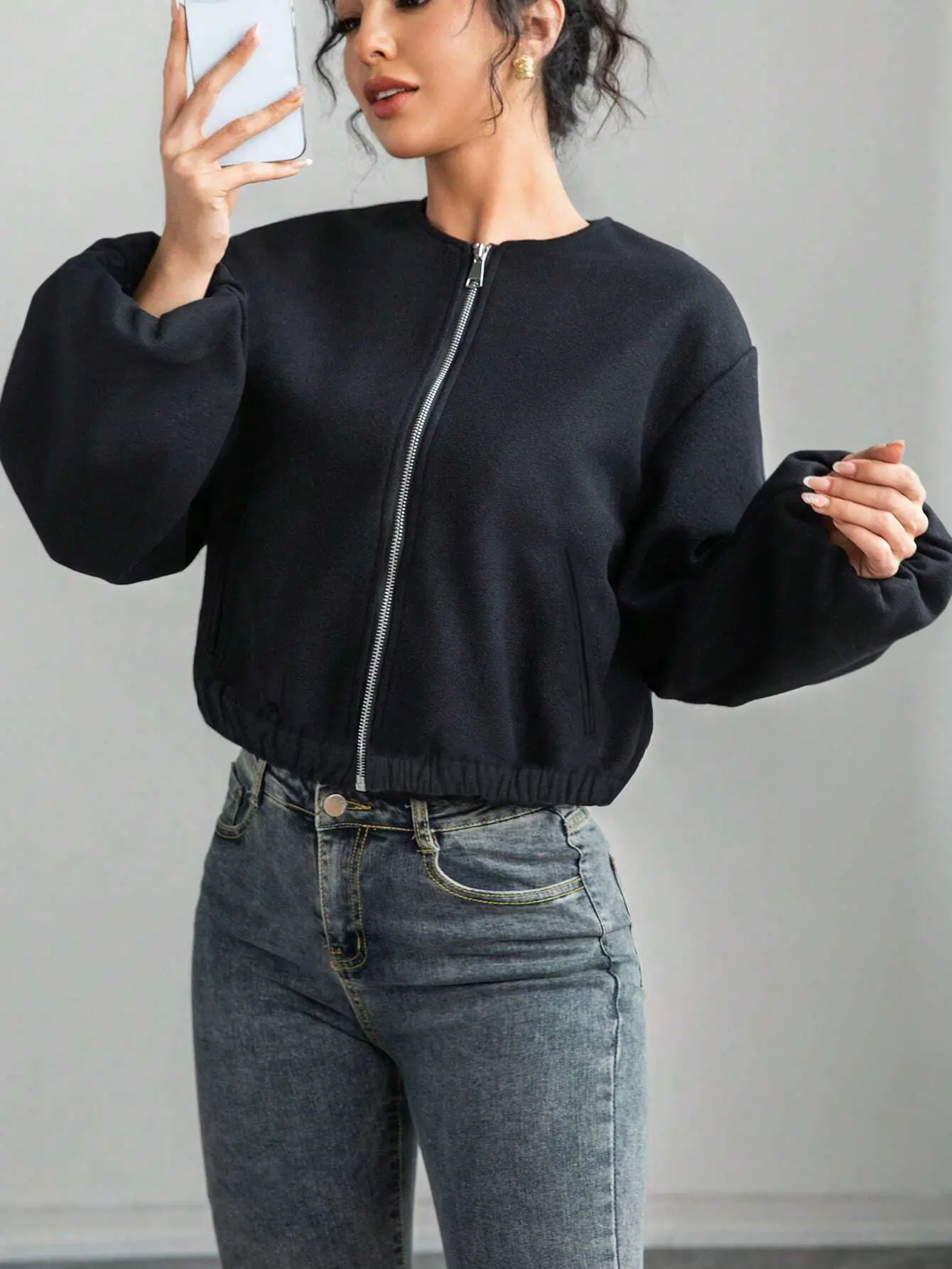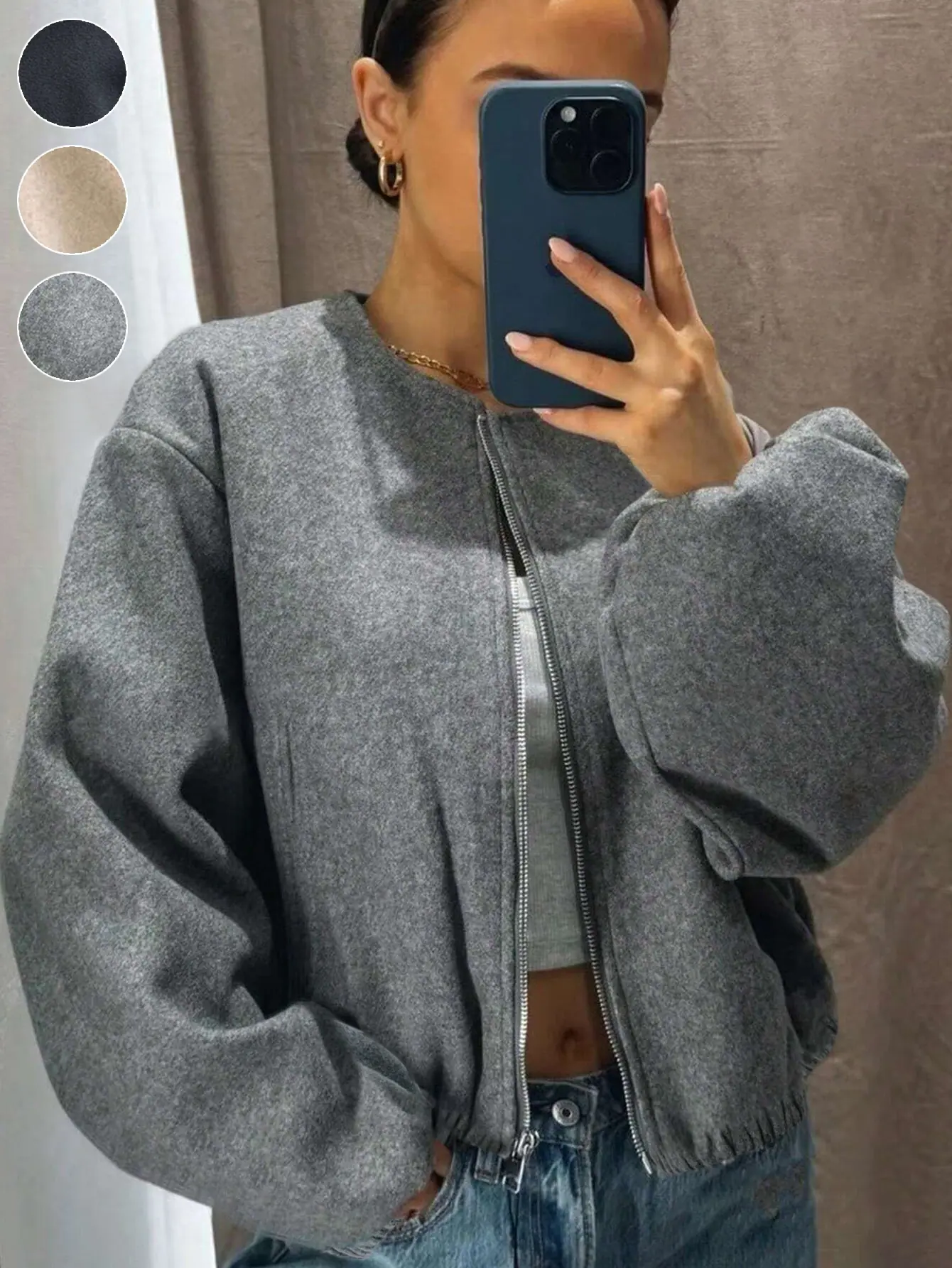 AliExpress Amazon Otoño e Invierno Nuevo Estilo Elogio Chaqueta con Cremallera Comercio Exterior Transfronterizo Chaqueta Corta con Cremallera Abrigo de Manga Larga