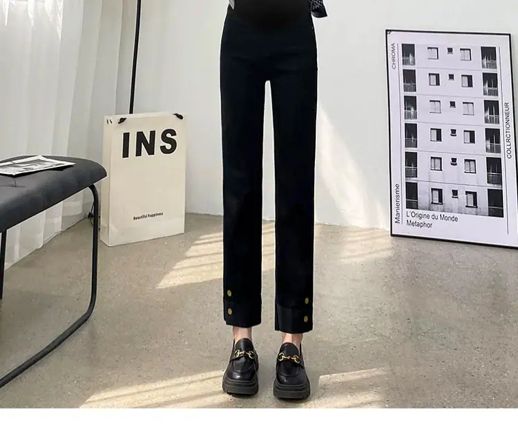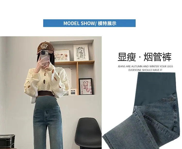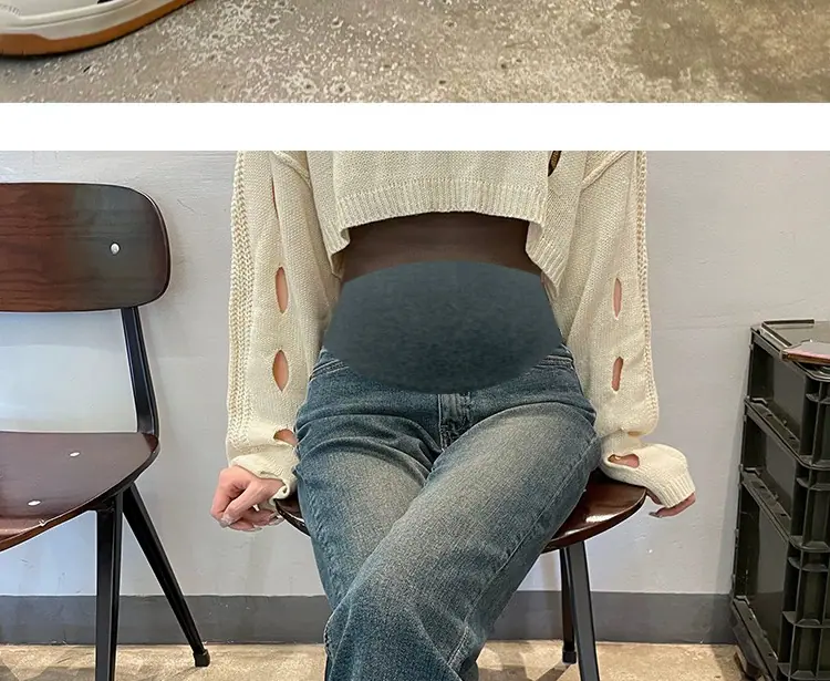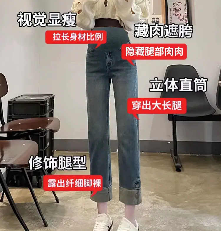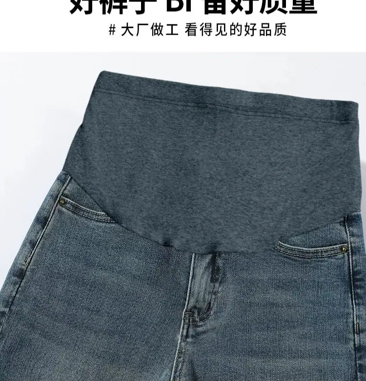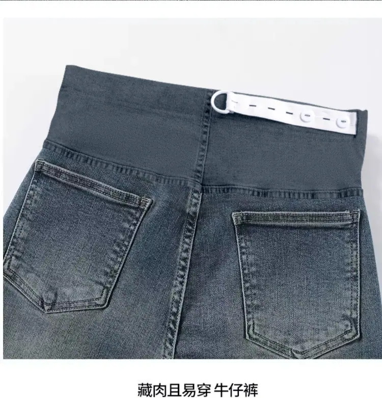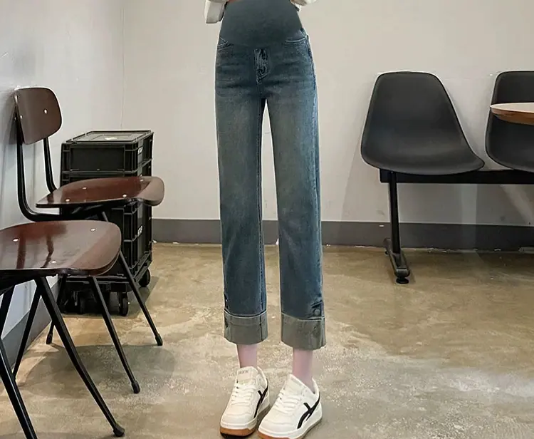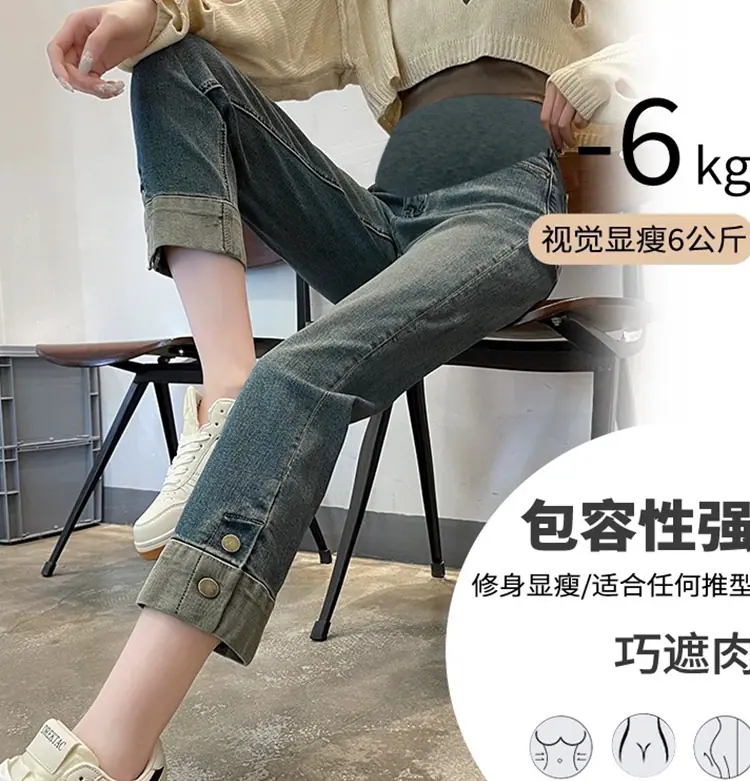 Jeans de pierna recta para mujeres embarazadas Estilo nuevo de primavera y otoño Ropa exterior Casual de alta elasticidad Casual que combina con todo Pantalones de pierna recta simples para mujeres embarazadas