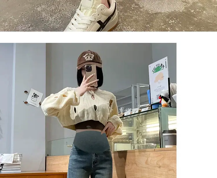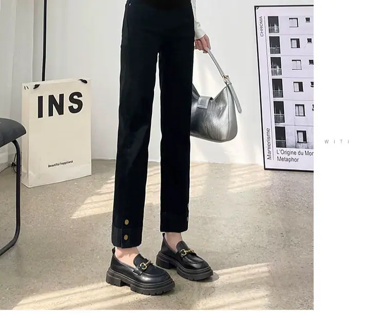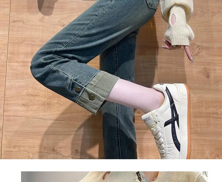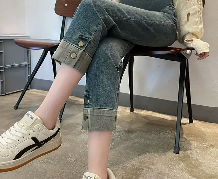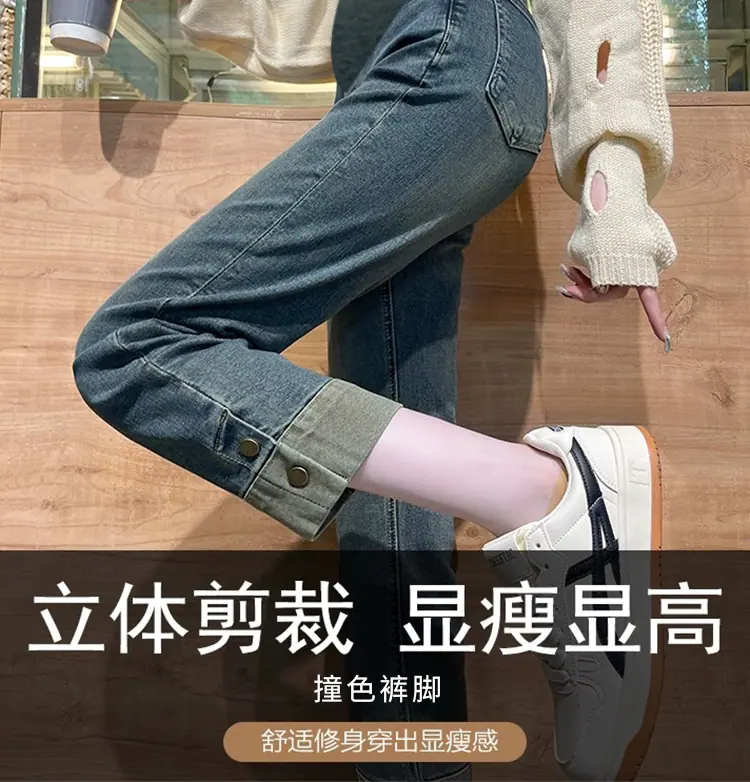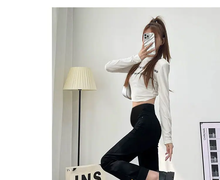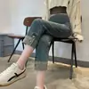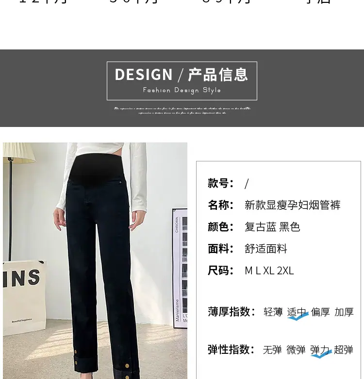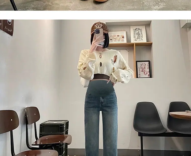 Jeans de pierna recta para mujeres embarazadas Estilo nuevo de primavera y otoño Ropa exterior Casual de alta elasticidad Casual que combina con todo Pantalones de pierna recta simples para mujeres embarazadas
