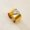 J05 Anillo de Acero Inoxidable de Oro Real de 18K Estilo Europeo y Americano Diseño de Contraste de Corazón Anillo Abierto Joyería para Parejas