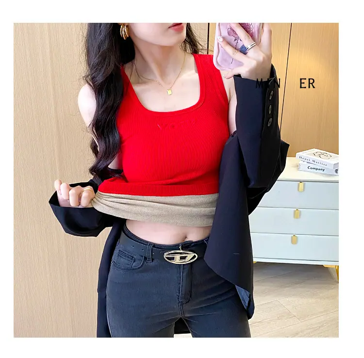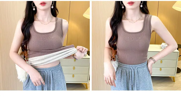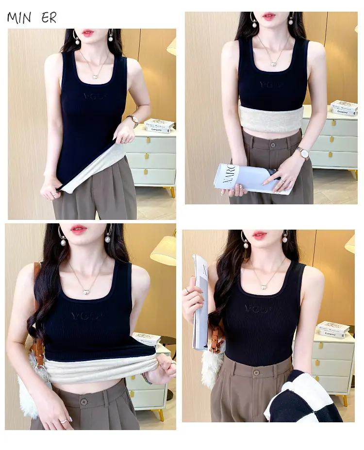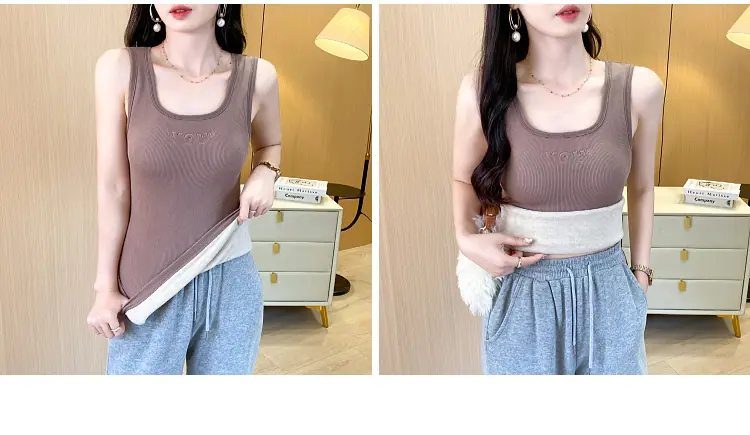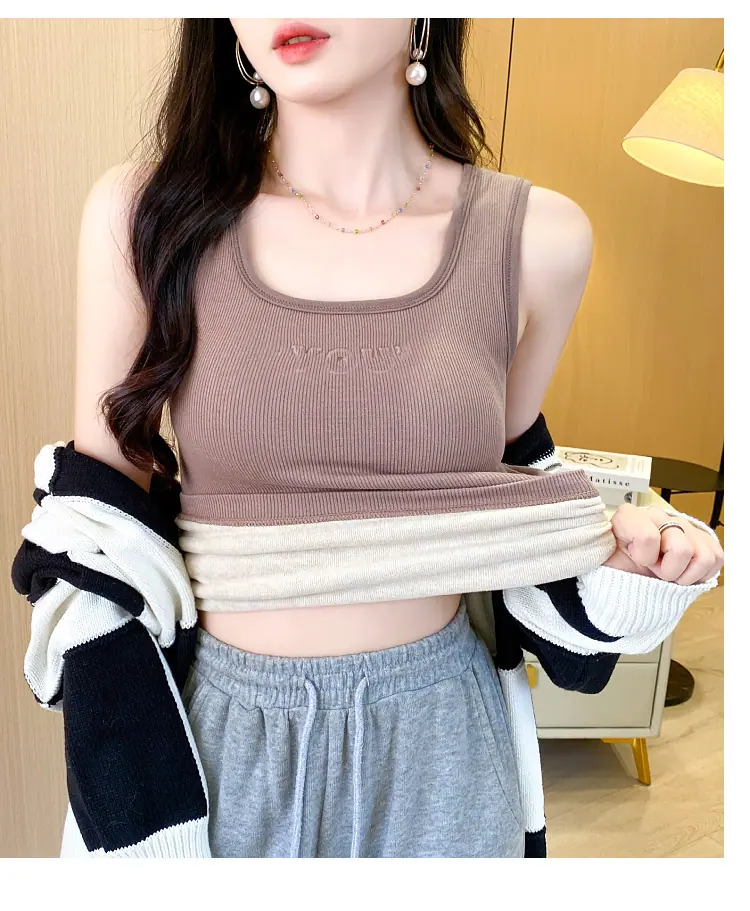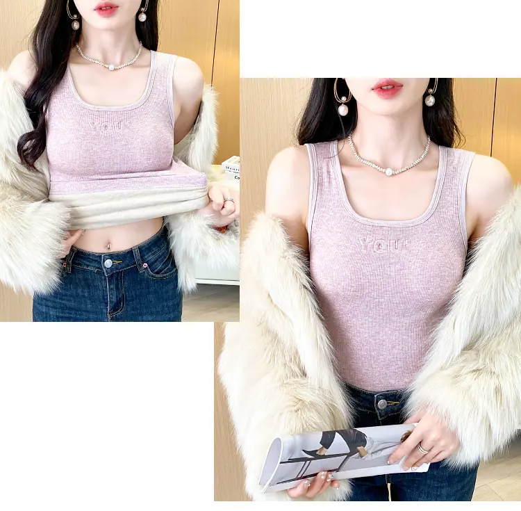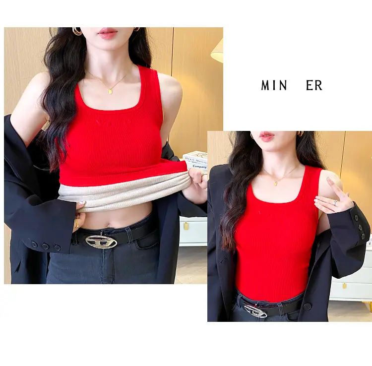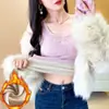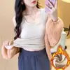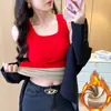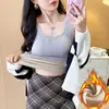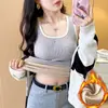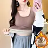 Capa Base Cálida para Mujer con Forro Polar Engrosada Otoño Invierno Alta Calidad Cuello Cuadrado con Almohadilla en el Pecho Capa Interior Top Adelgazante Ropa Exterior
