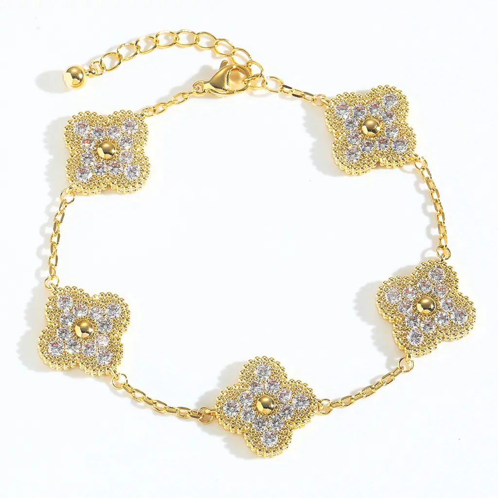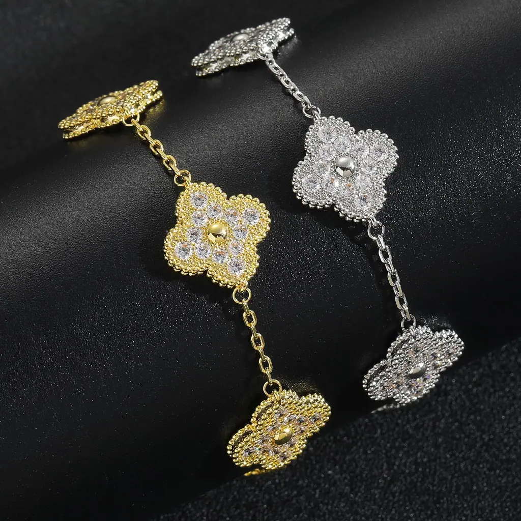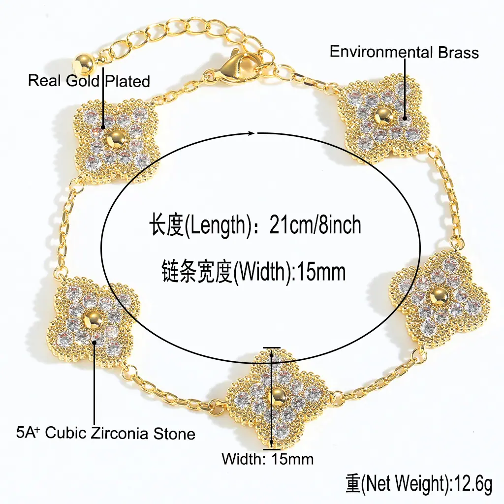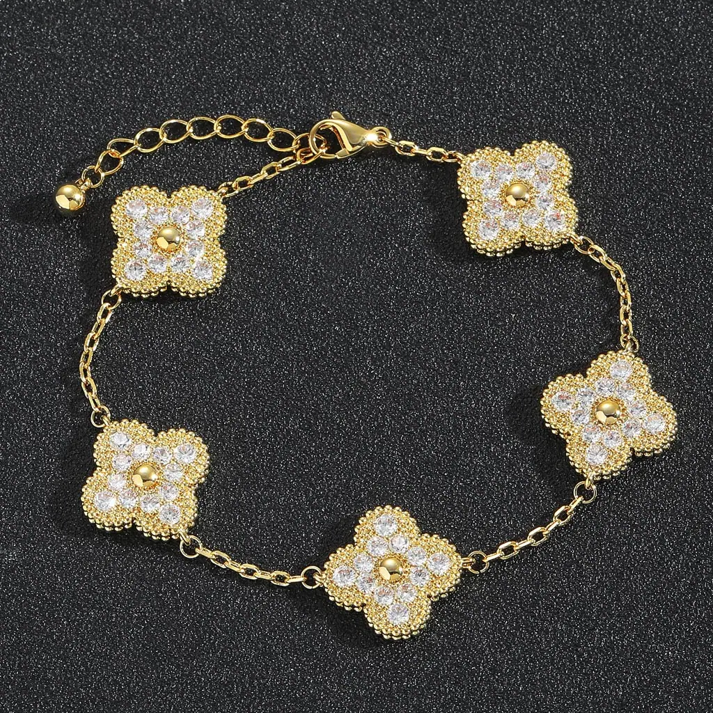 Nueva Pulsera de Trébol de Cuatro Hojas Cobre Micro-incrustado Zircón Personalizado Trendy Pulsera para Mujer Hip-hop Nicho Accesorios Pulsera de Flores