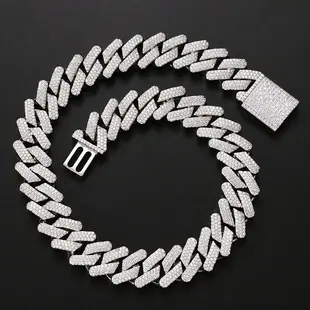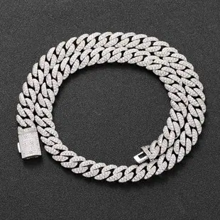 Collar de hip-hop con barra cubana de estilo hip-hop para hombres europeos y americanos, con incrustaciones de cobre y circonita de 14 mm en forma de diamante, cadena cubana de estilo hip-hop.