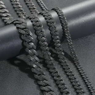 Collar de cadena cubana rómbica de circonita negra hip-hop europea y americana de 10-13-15-20 mm, collar hip-hop de personalidad de marca moderna
