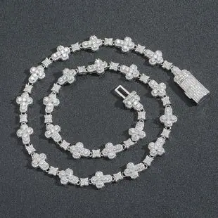 Joyería transfronteriza, personalidad europea y americana, hip-hop, collar de 10 mm con flor cruzada y circonitas, joyería de nicho de moda para hombres y mujeres.