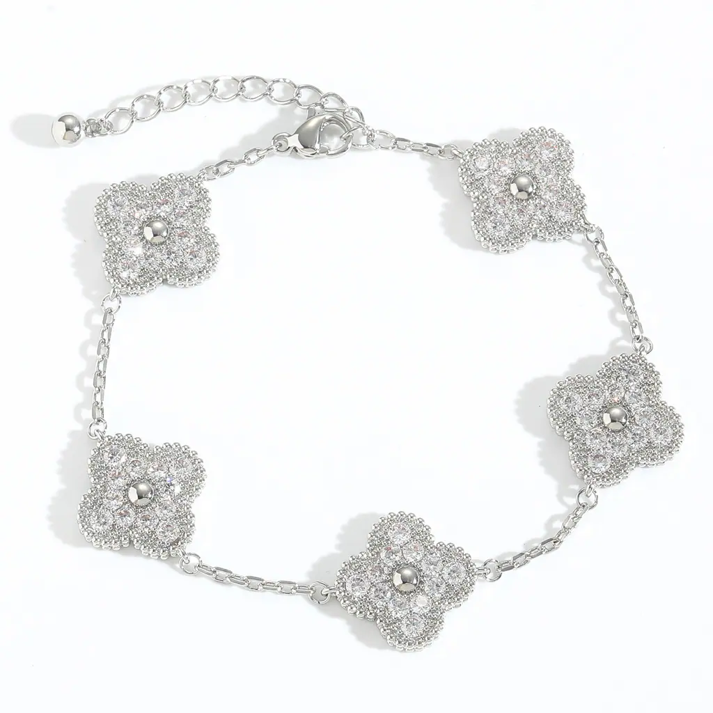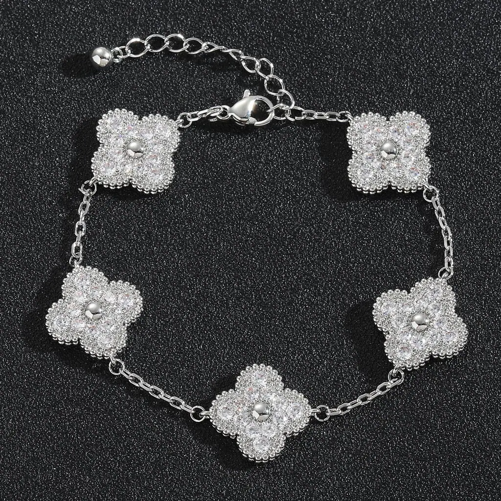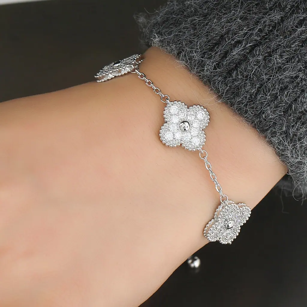 Pulsera de cadena de tenis de diamantes de trébol de cuatro hojas estilo ins europeo y americano exquisita moda de alta gama accesorios de flores nuevos productos transfronterizos