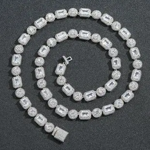 Collar de hip-hop con cadena de azúcar de roca redonda cuadrada de 8 mm estilo europeo y americano, circonita cuadrada en T, joyería creativa de tendencia hip-hop para hombres.