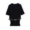 Suéter de Punto para Mujer Otoño Cuello Redondo Manga Corta Cinturón Personalizado Tejido Color Sólido Estilo Transfronterizo Europeo y Americano Tendencia Top de Lana