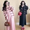 Nuevo Conjunto de Dos Piezas para Otoño e Invierno 2025: Cárdigan de Rayas Holgado y Falda con Tirantes, Traje de Maternidad de Moda para Mamá, Se Puede Usar después del Parto