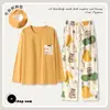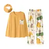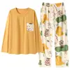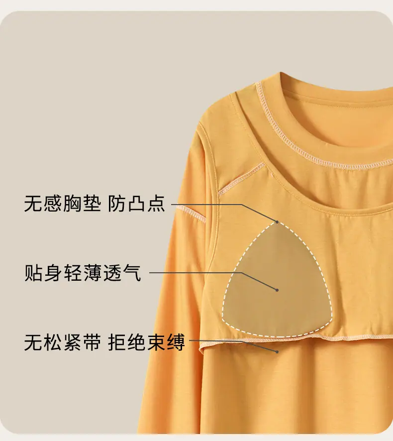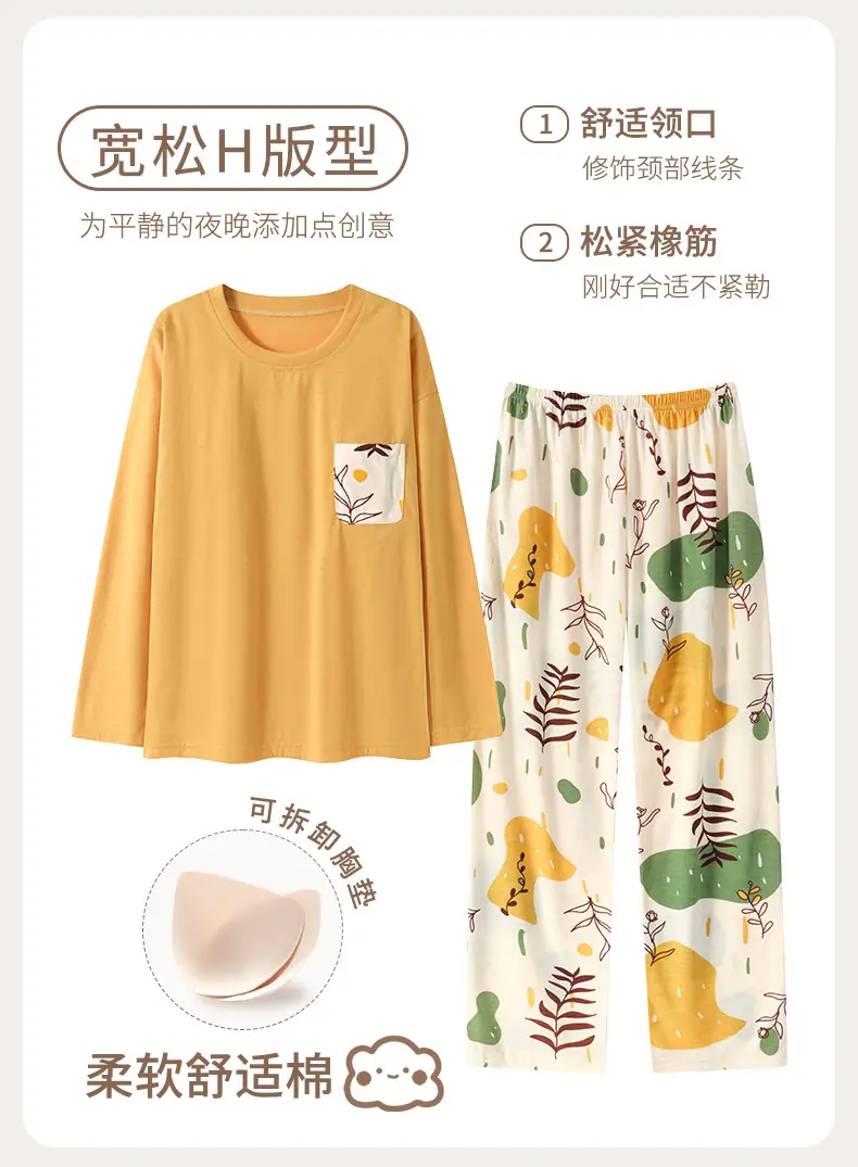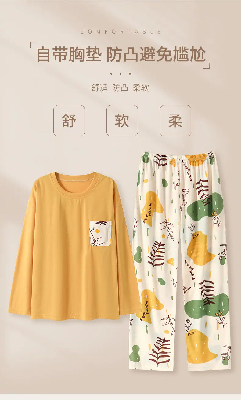 Pijama para Mujer con Almohadilla en el Pecho Primavera y Otoño Algodón Jersey Manga Larga Nuevo Antigolpes Delgado Traje de Ropa para Casa