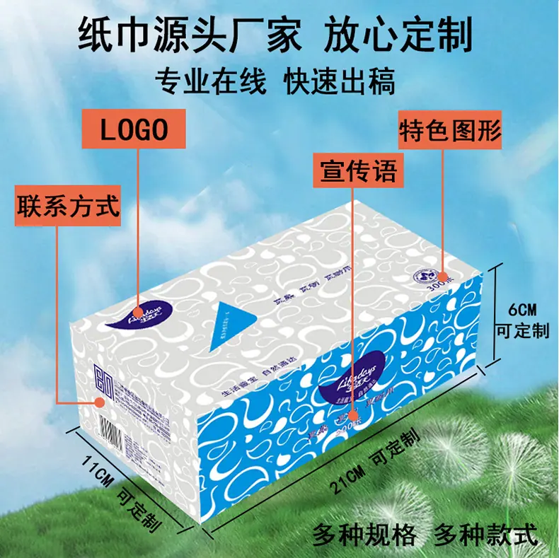 Servilletas de Papel Facial en Caja Comerciales Personalizadas Hotel Restaurante Hogar Papel Tisú Promocional Papel Tisú Doméstico Portátil