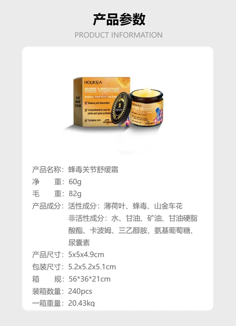 Crema para Articulaciones Veneno de Abeja Houkea Crema Nutritiva Diaria para la Piel de las Articulaciones de Aplicación Externa