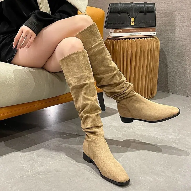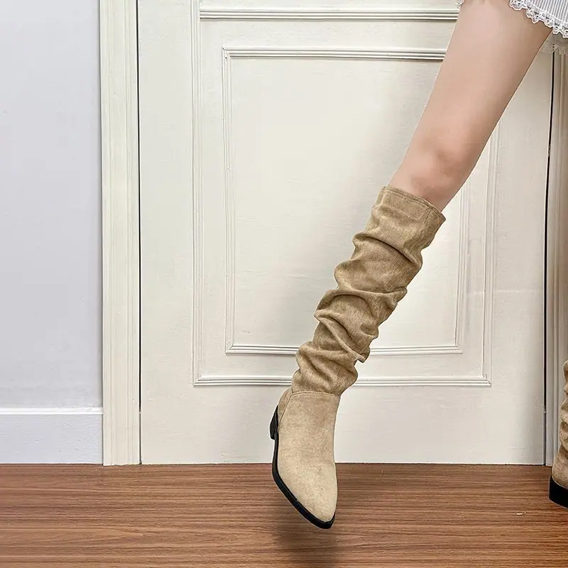 Botas moda zapatos de mujer tacón grueso botas de montar adelgazantes por encima de la rodilla estilo vintage caliente botas slouch 2025 nuevo
