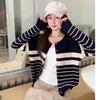 Cardigan de Punto Rayado Estilo Casual Perezoso para Mujer Otoño e Invierno Nuevo Holgado Adelgazante Suave Cera Chaqueta Suéter Top