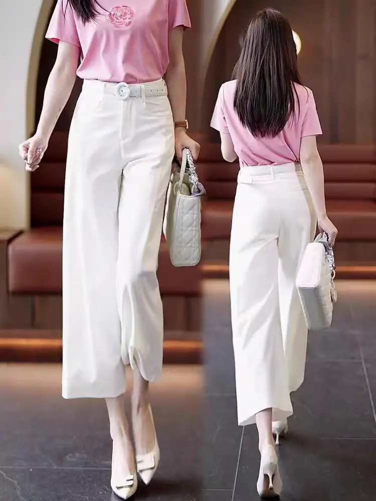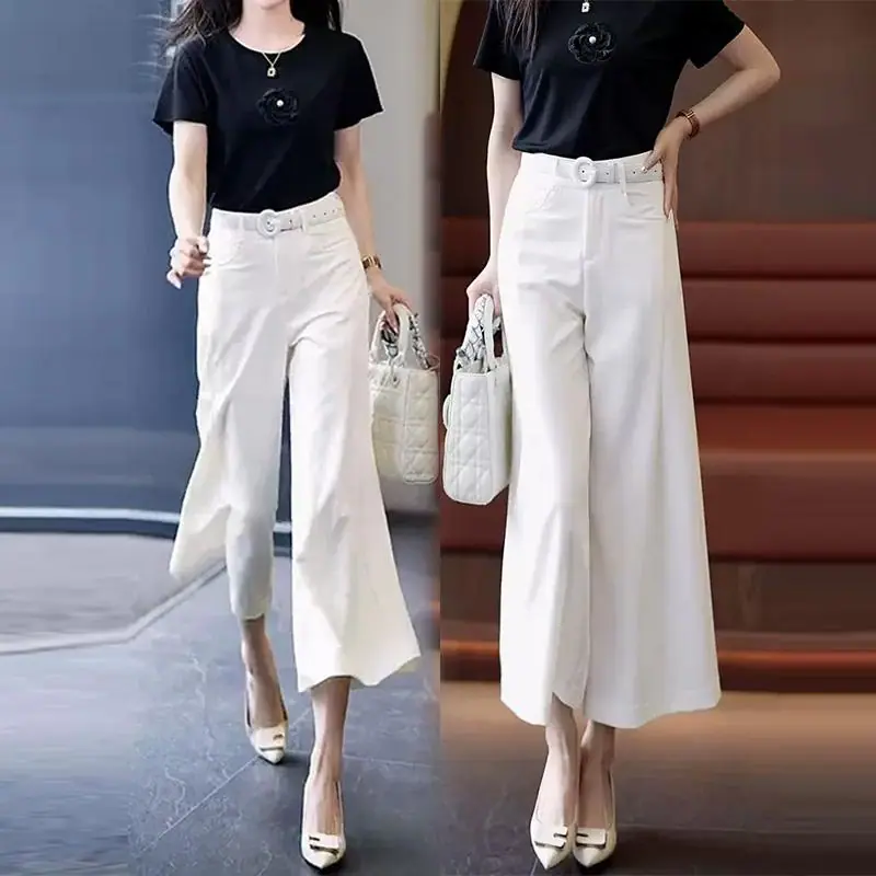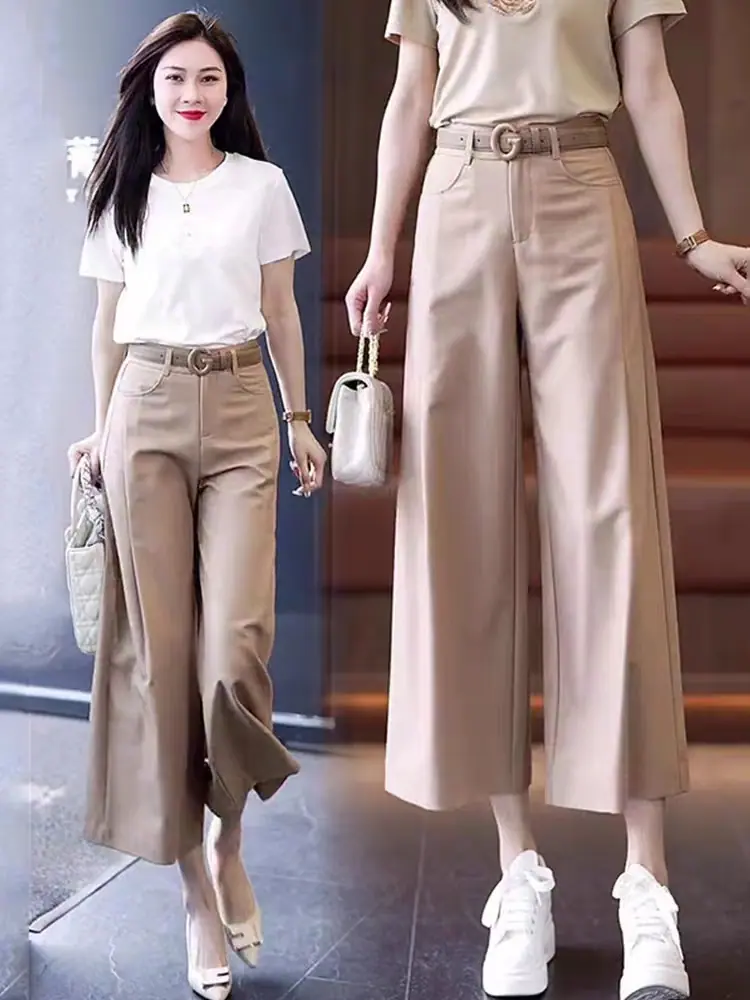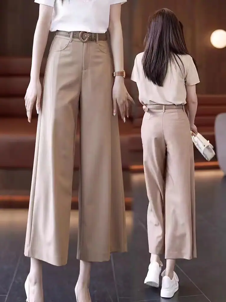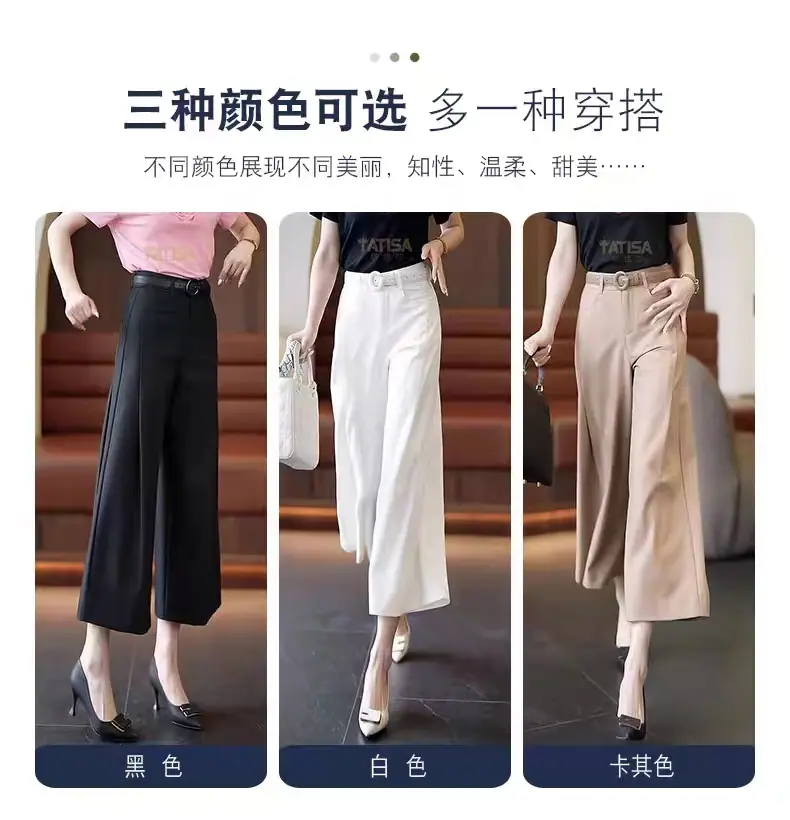 Pantalones de pierna ancha mujer 2025 verano nuevo tiro alto holgados adelgazantes pantalones acampanados petite traje casual pantalones de mujer venta al por mayor tendencia