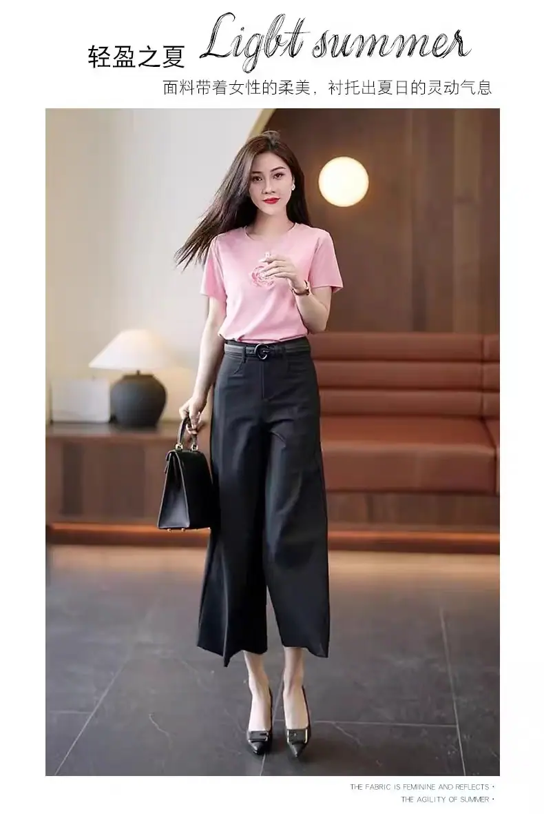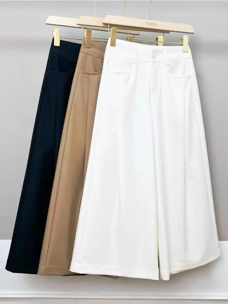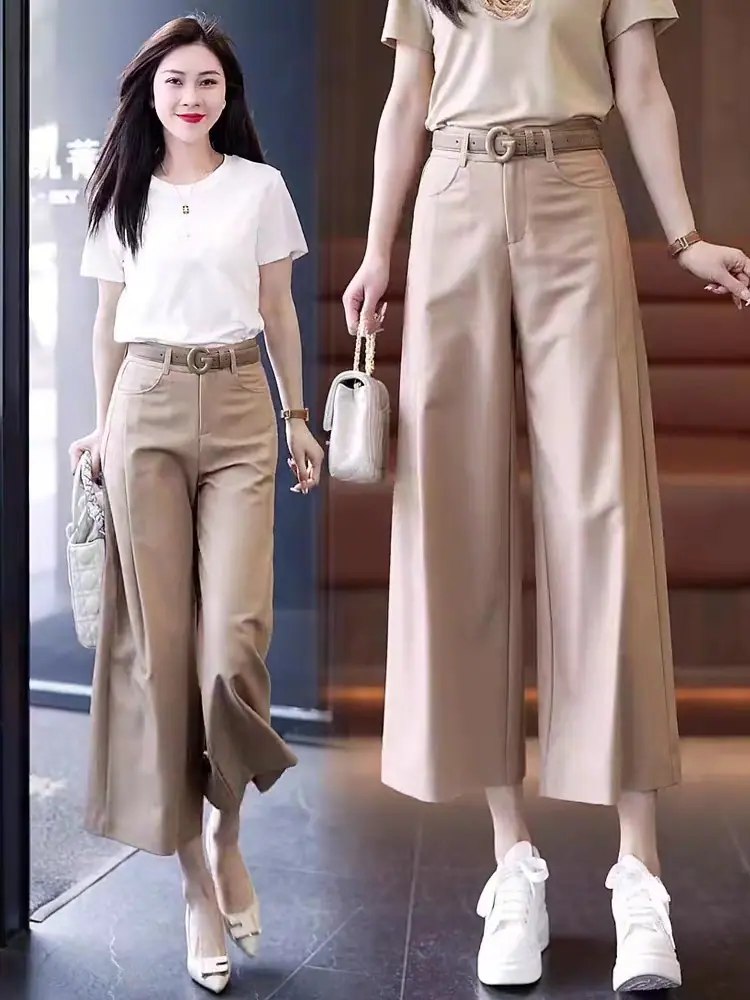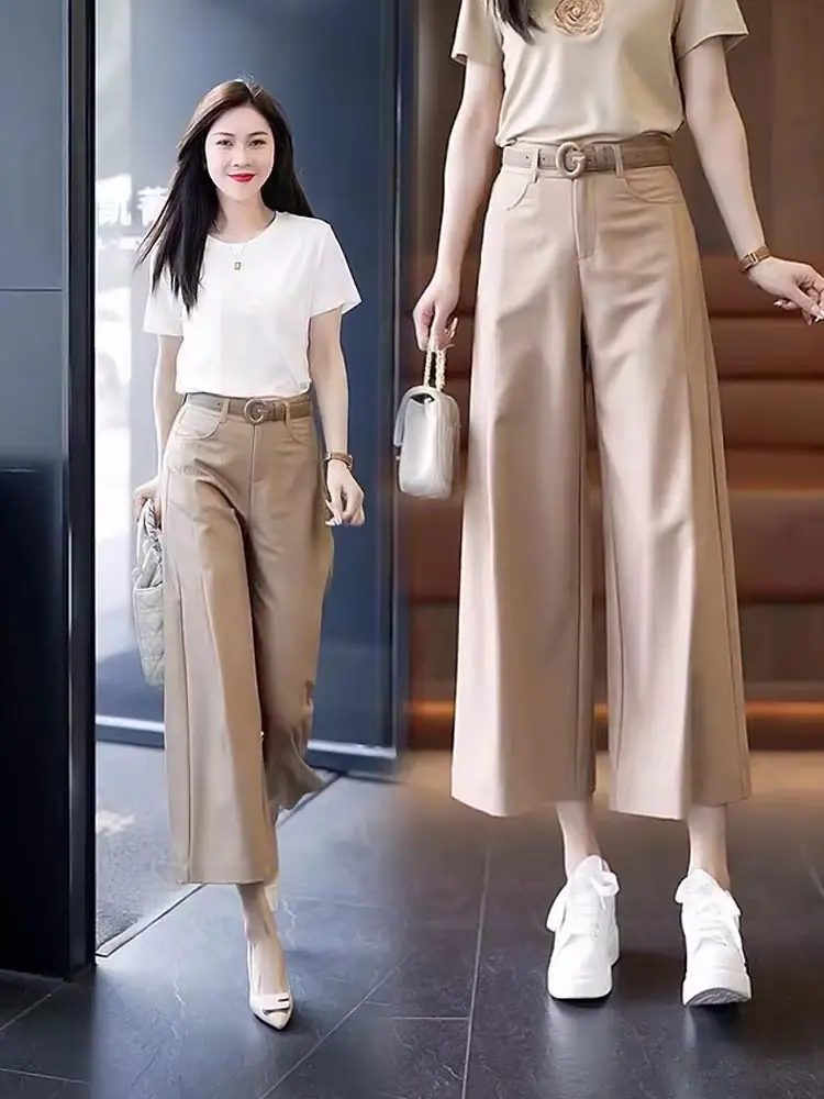 Pantalones de pierna ancha mujer 2025 verano nuevo tiro alto holgados adelgazantes pantalones acampanados petite traje casual pantalones de mujer venta al por mayor tendencia