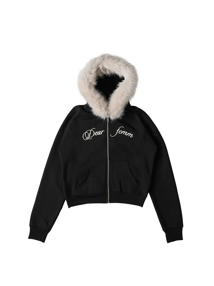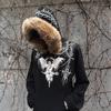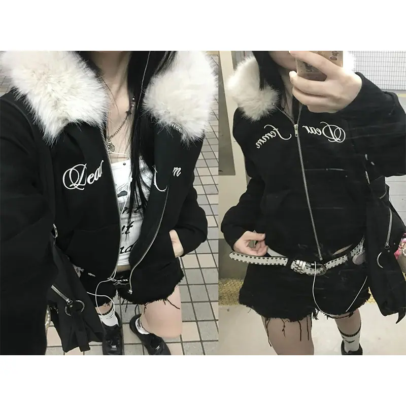 2025 Nuevo Europeo y Americano ins Estampado Cuello de Piel Personalidad Cremallera Sudadera con Capucha Ropa de Calle Sudadera con Capucha Chaqueta Tendencia Callejera