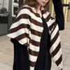 Chal de Punto Rayado Texturizado de Alta Calidad de Lana Otoño e Invierno Elegante Cálido Versátil Triángulo Bufanda de Moda Calentador de Cuello Moderno Mujeres