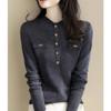 2025 Nuevo Otoño e Invierno Estilo Coreano de Alta Gama Tops de Punto de Manga Larga para Mujer Aspecto Adelgazante Camisetas Básicas Prendas de Punto Exteriores