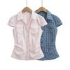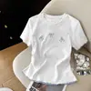 Camiseta de Manga Corta con Volantes de Lunares de Ola Fresca Pequeña para Mujer Verano 2024 Dulce Jersey de Cuello Redondo de Manga Corta para Mujer