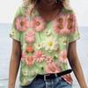 Directo de fábrica 2024 playera de mujer con estampado floral y cuello en V playera de manga corta ropa de mujer playera camisa cuello en V