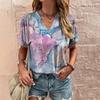 Directo de fábrica 2024 playera de mujer con estampado floral y cuello en V playera de manga corta ropa de mujer playera camisa cuello en V
