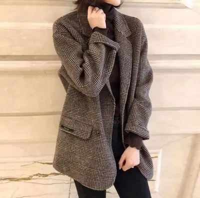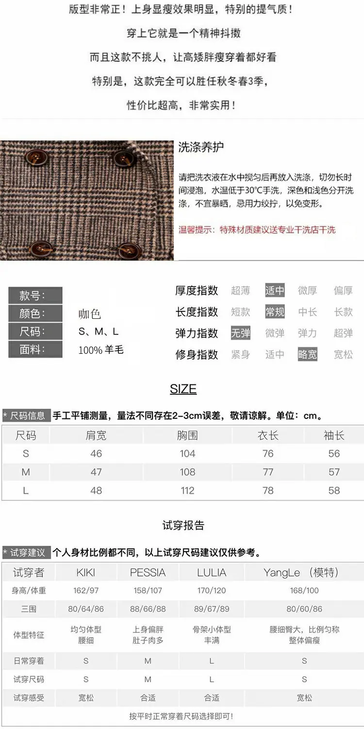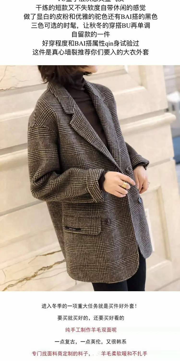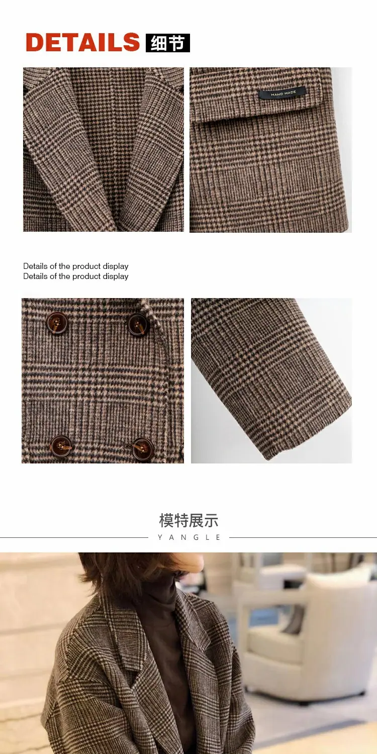 Abrigo de Cachemira de Doble Vista Otoño/Invierno 2025 para Figura Petite Traje de Cuadros Británicos Abrigo Largo de Mezcla de Lana