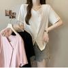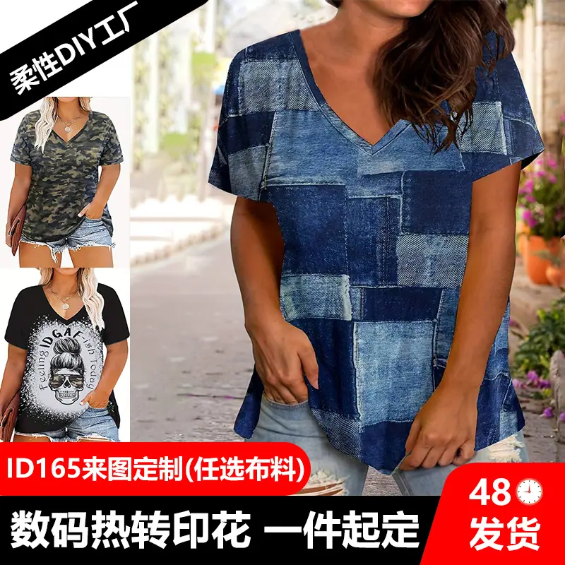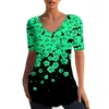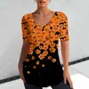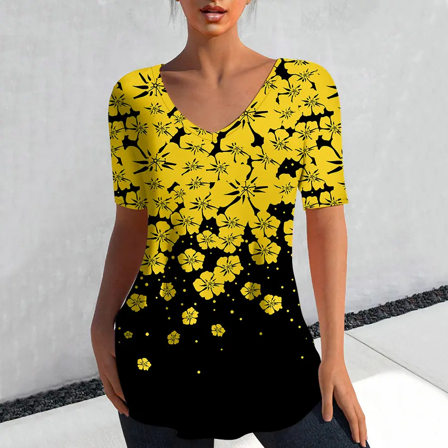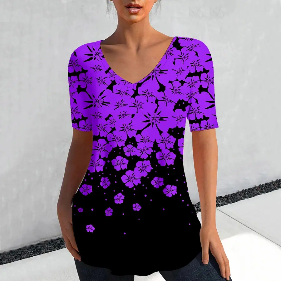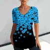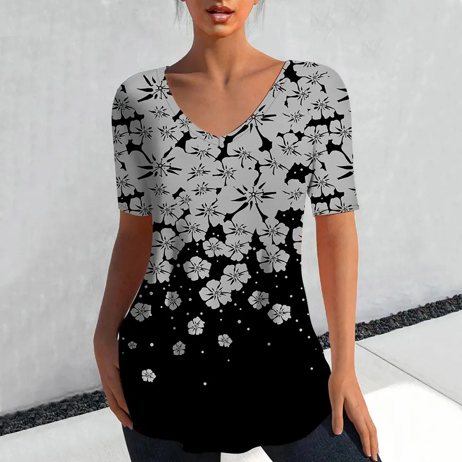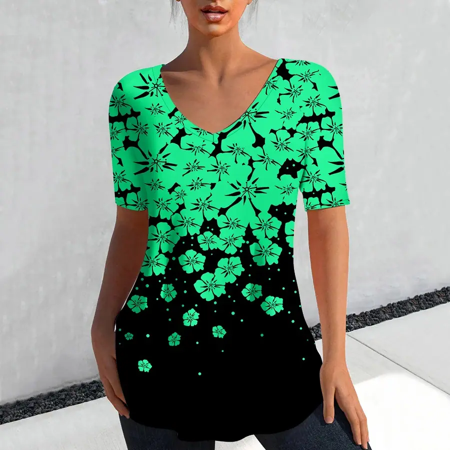 Camiseta Divertida para Mujer 2024 Verano Manga Corta Top Cuello en V Holgada Estampado de Flores Ropa Retro Camiseta de Mujer