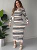 Otoño 2025 Nuevo Transfronterizo Europeo y Americano Amazon Transfronterizo Diseño Femenino Suéter de Punto Vestido Largo a Rayas