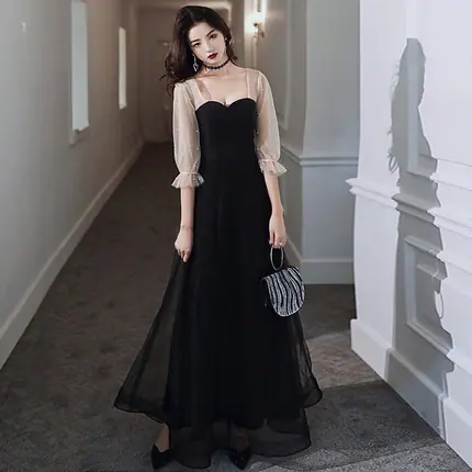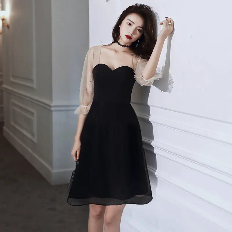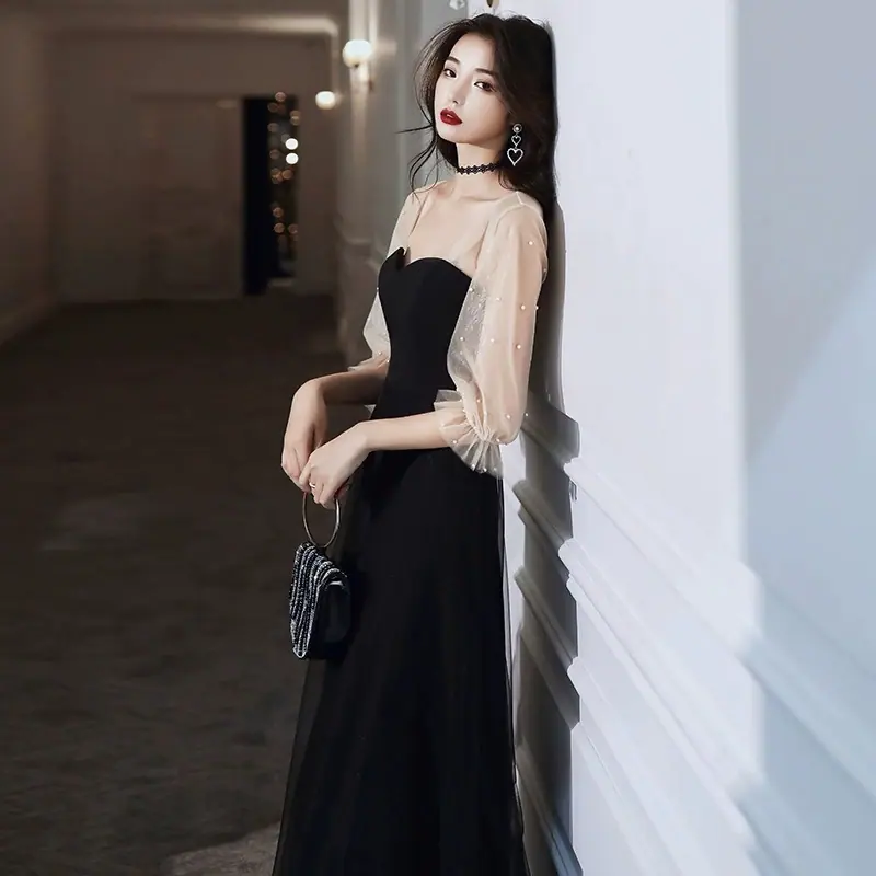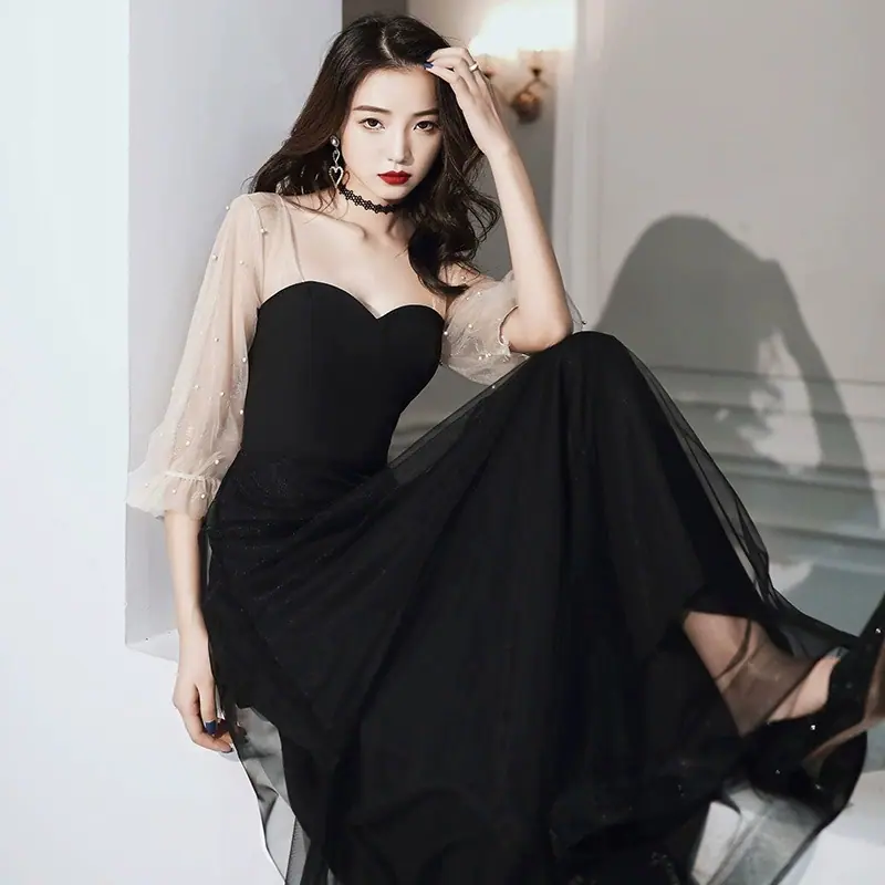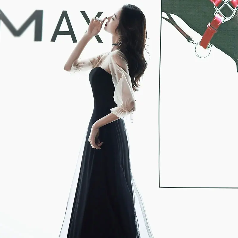 Vestido de Noche Negro Corto 2025 Nuevo Estilo de Verano Que Pueden Usar las Celebridades, Vestido Largo de Banquete de Cumpleaños para Mujer