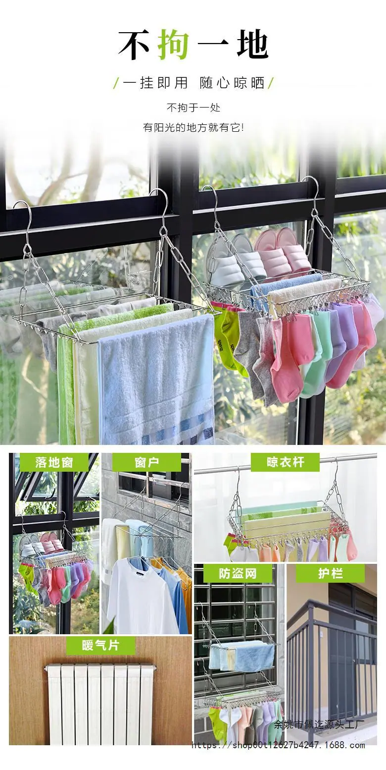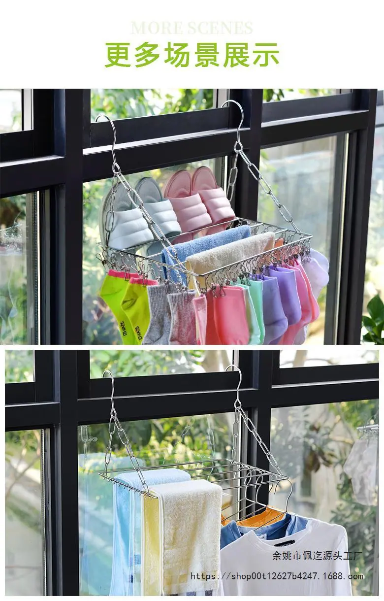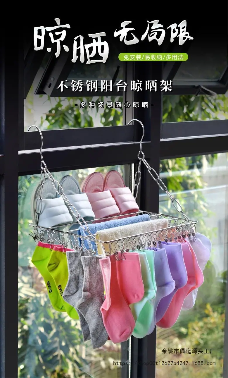 Tendedero de Balcón de Acero Inoxidable para Calcetines, Tendedero de Calcetines Multipinza para Repisa de Ventana, Tendedero de Ropa, Artefacto Antirrobo Colgador de Zapatos para Ventana