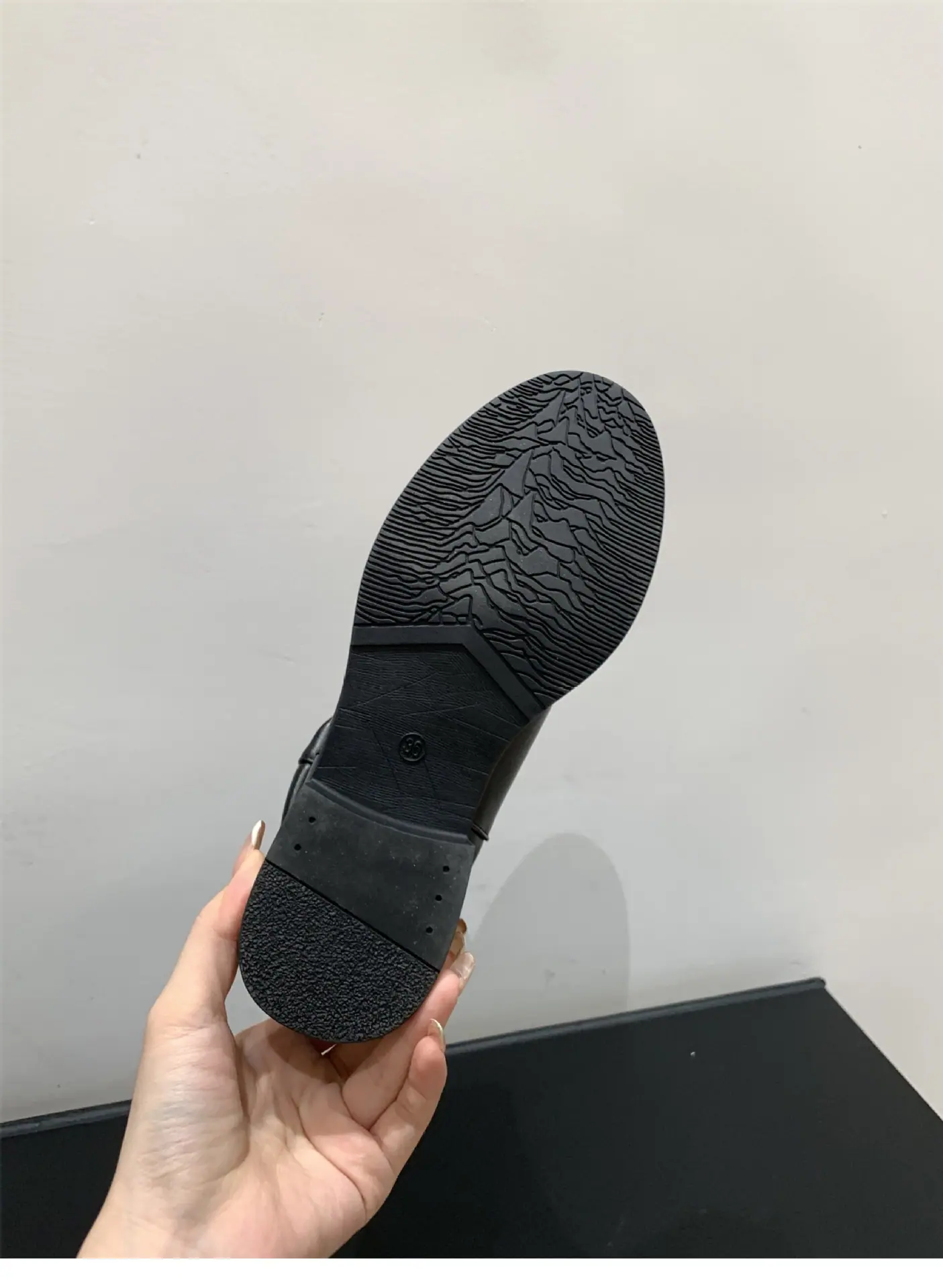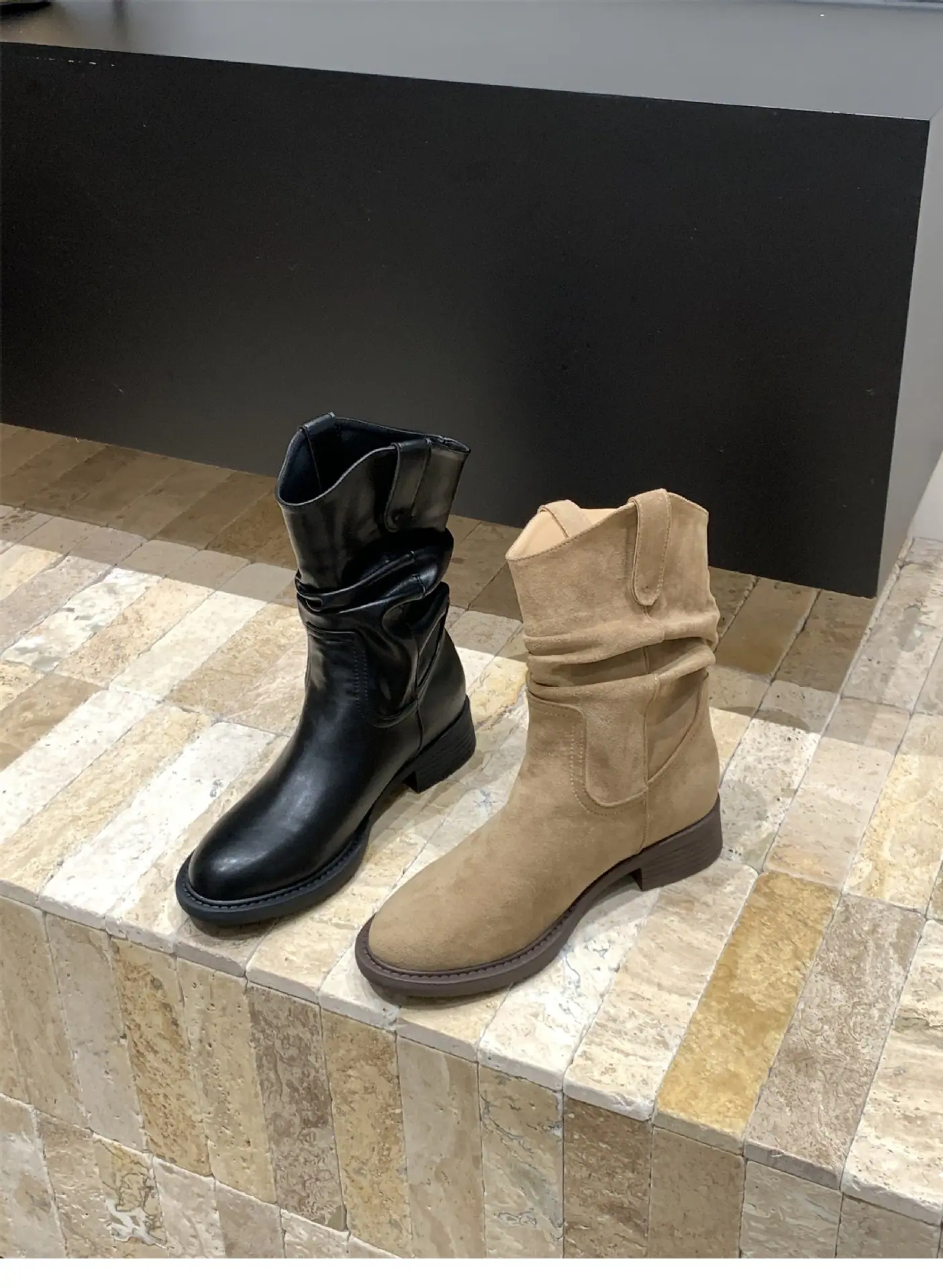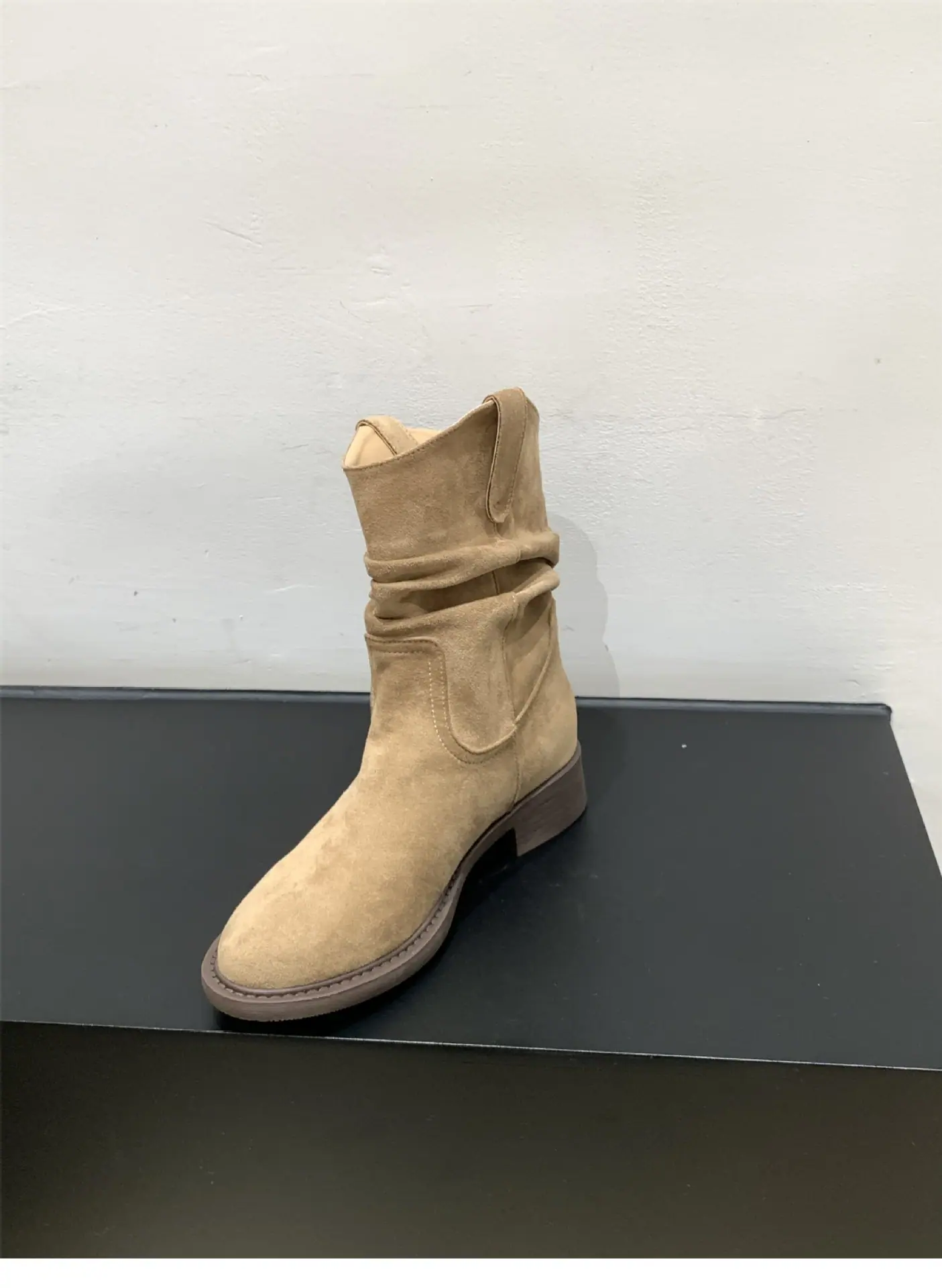 Botas adelgazantes de media pantorrilla con boca en V y suela gruesa para mujer, zapatos 2025 primavera y otoño, botas individuales, botas cortas holgadas de vaquero occidental, botas Martin