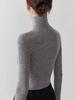 Camiseta de punto de cuello alto gris para mujer en otoño e invierno, Suéter ajustado suave y ceroso de cuello alto con diseño y top elegante