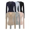 Playera de Manga Larga con Cuello en V Profundo Puro y Sexy Decorada con Botones Otoño Nuevo Versátil Ajustada Chica Hot Color Sólido Top Base