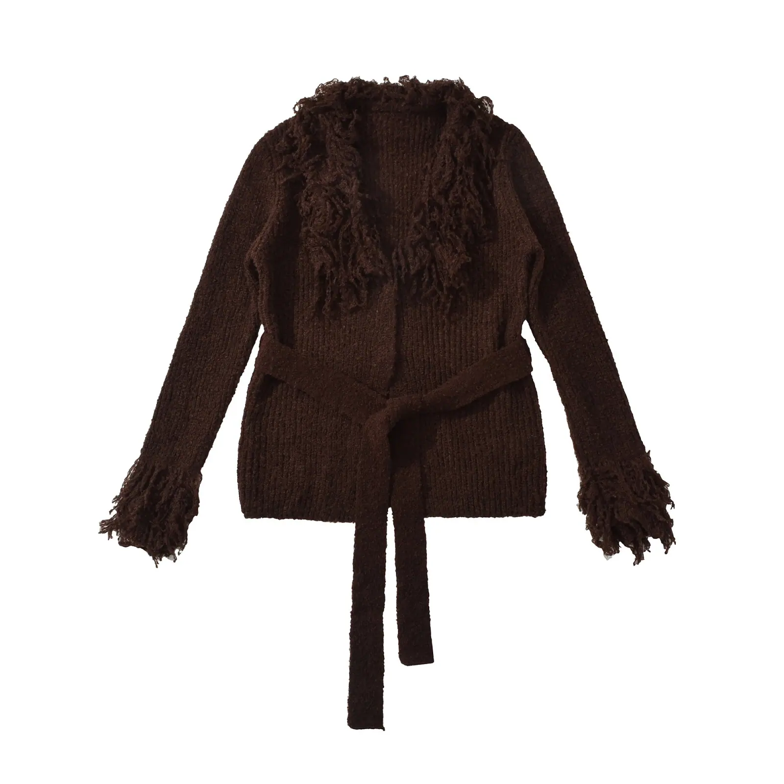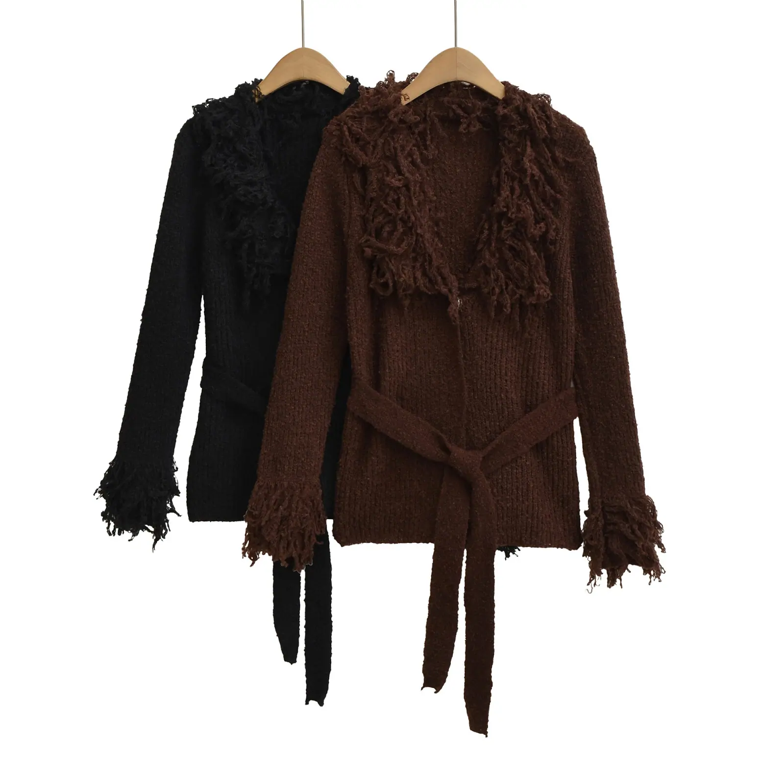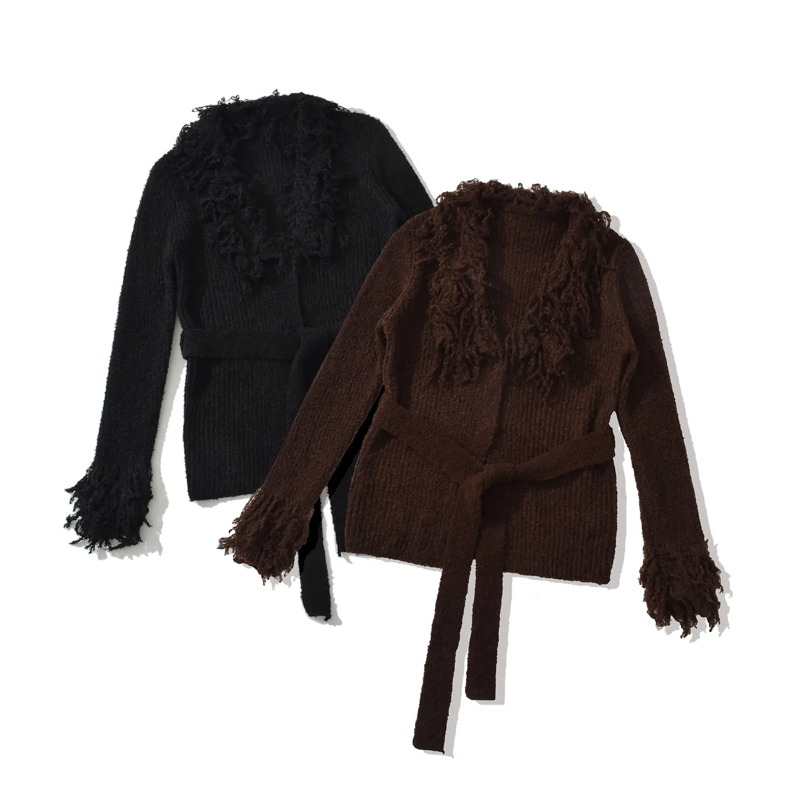 Z Estilo Europeo y Americano Transfronterizo 2025 Nueva Moda Temperamento Amazon Ropa de Mujer Venta al por Mayor Cárdigan Suéter con Cinturón de Borlas