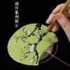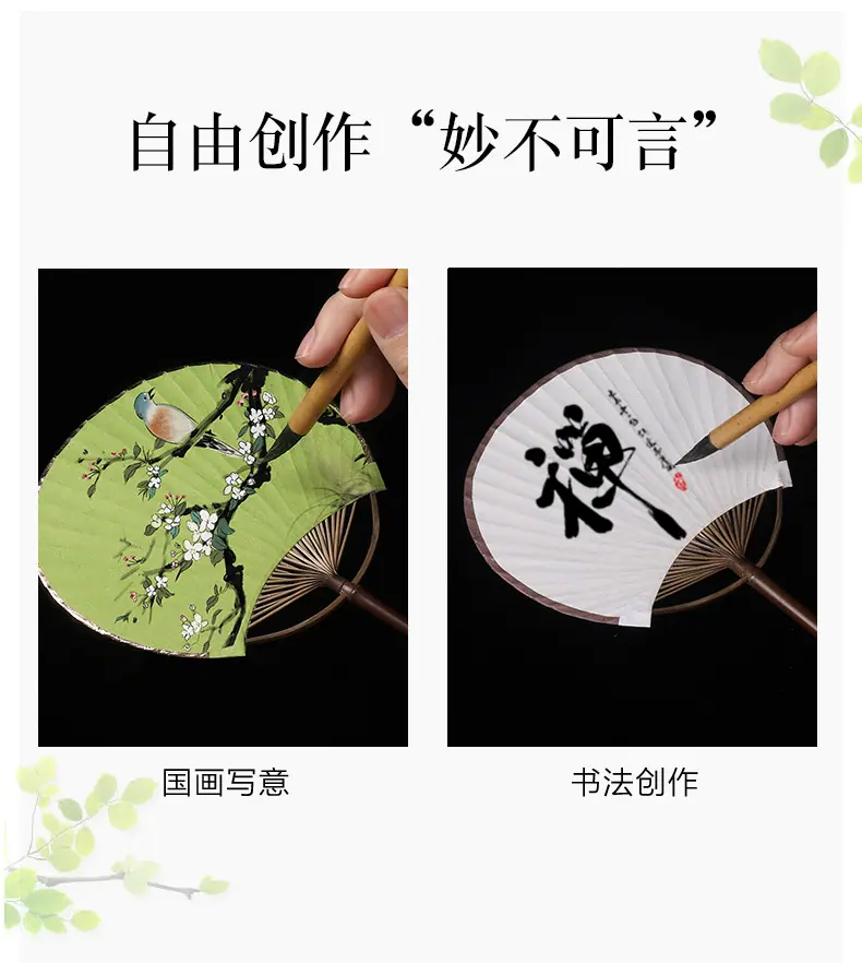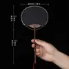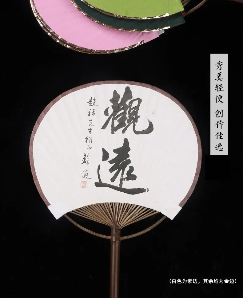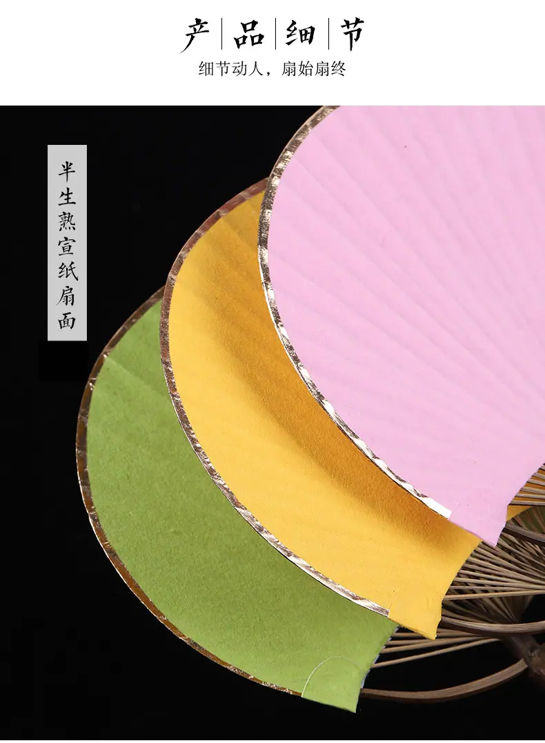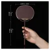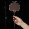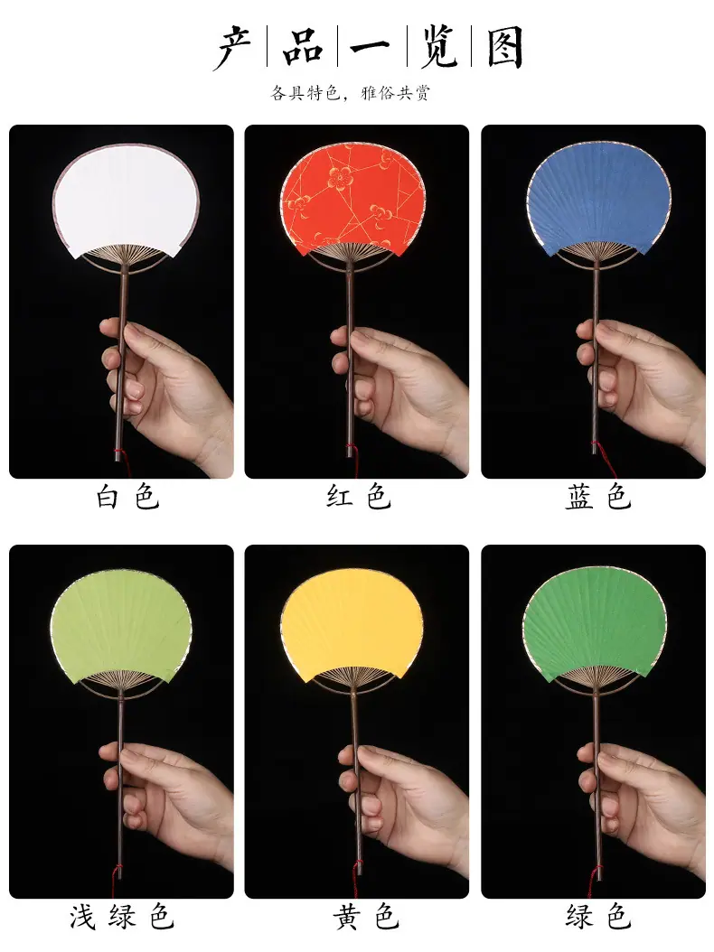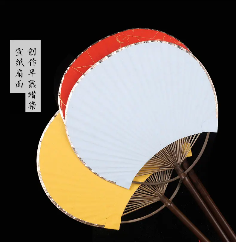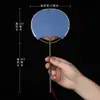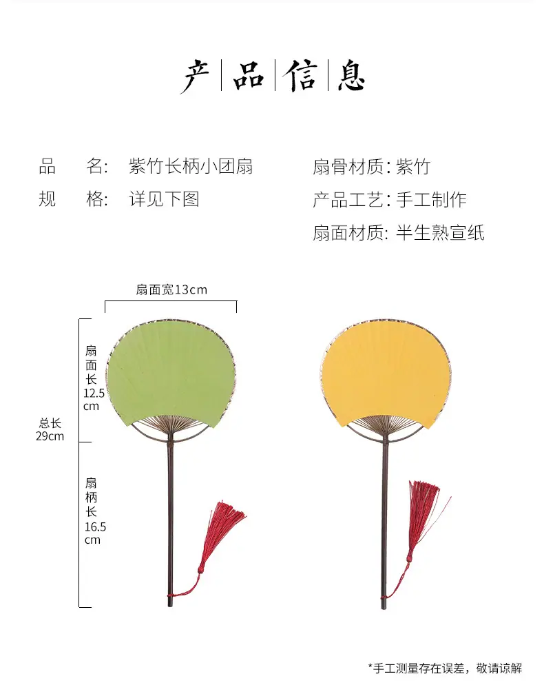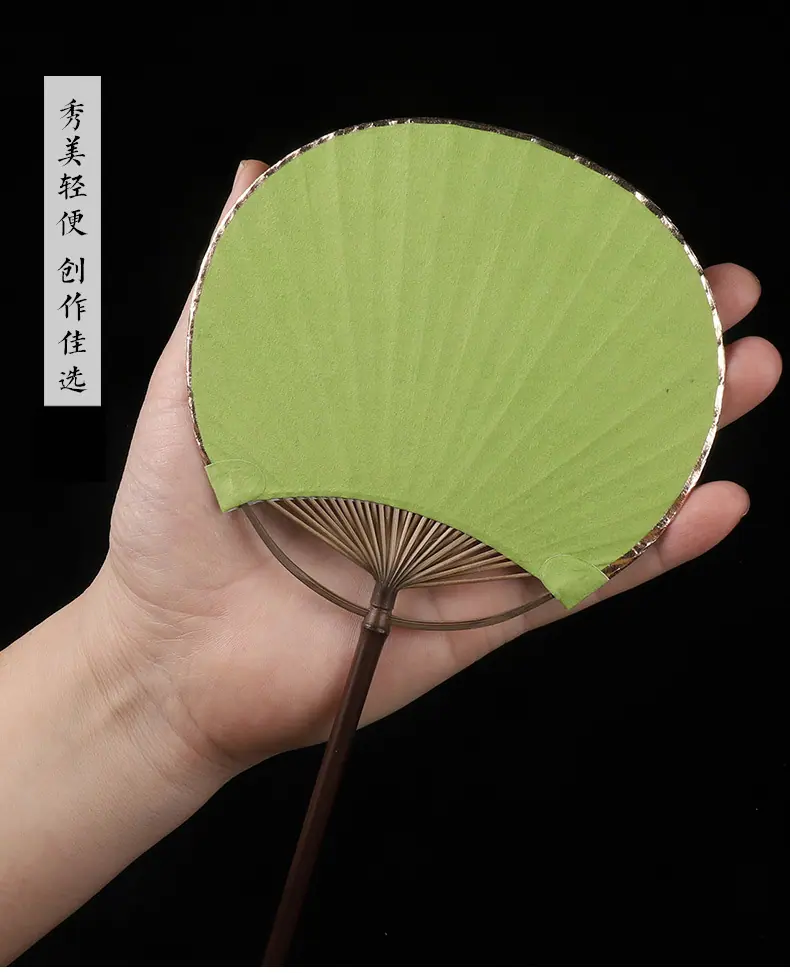 Superficie de Abanico de Papel Xuan en Blanco Abanico Redondo Mini Estilo Antiguo Abanico Pequeño Caligrafía Pintura DIY Abanico de Palacio Bambú Púrpura Abanico de Mango Largo Regalo
