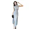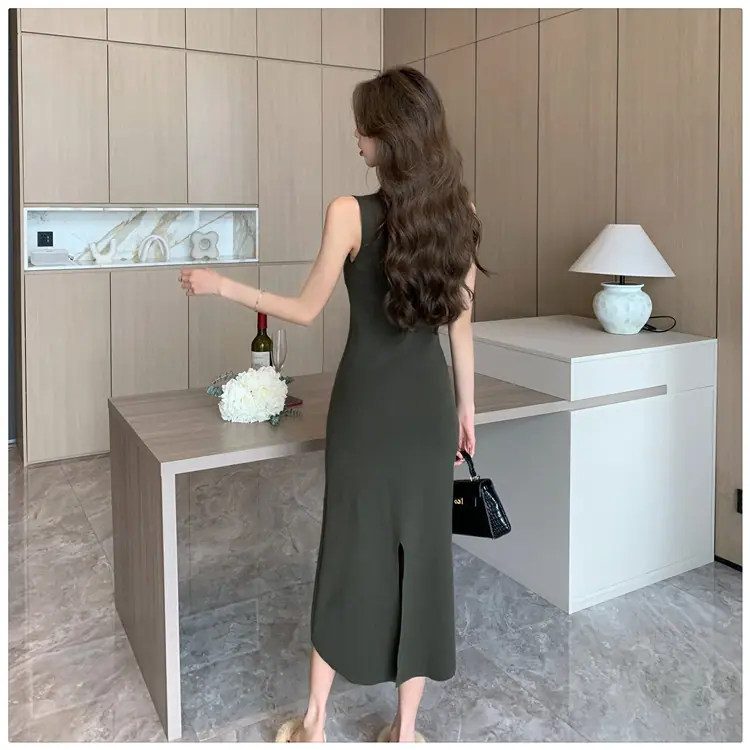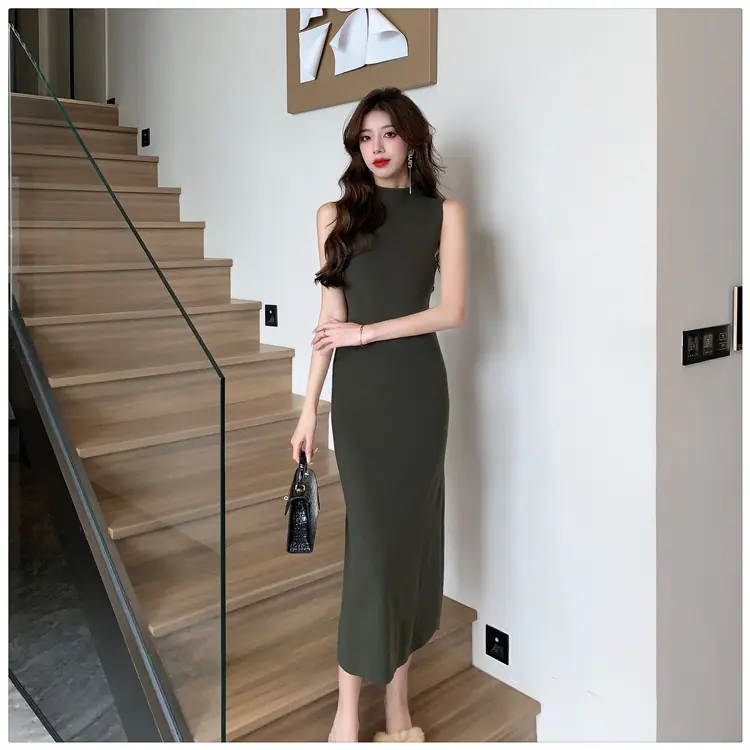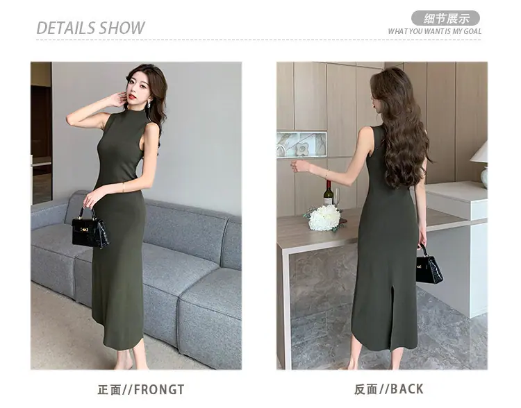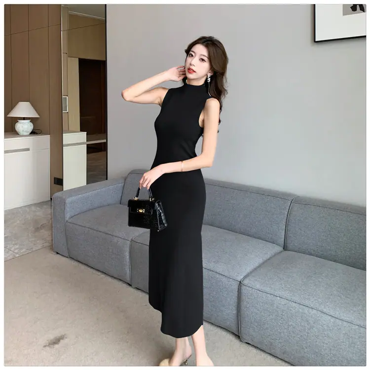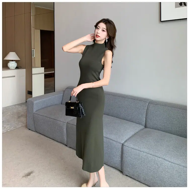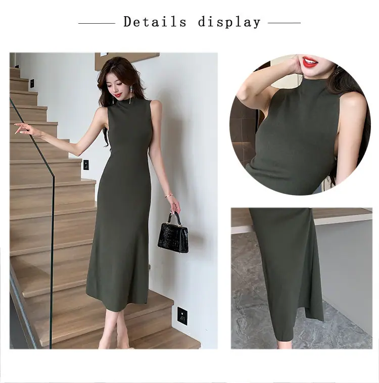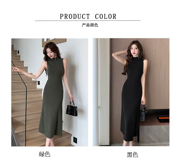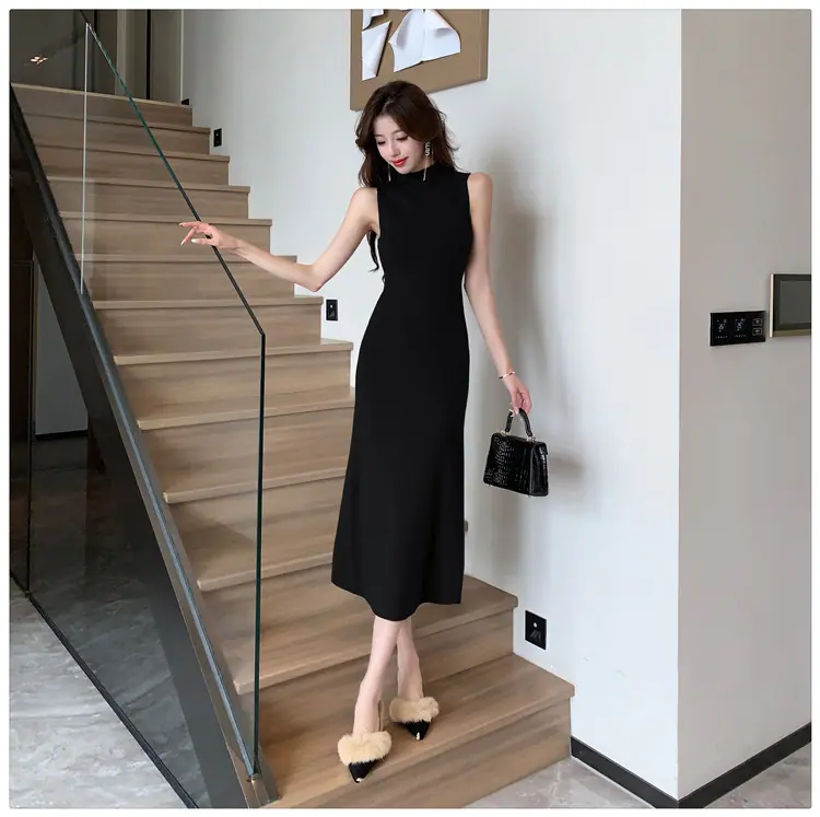 Transfronterizo 2025 Otoño/Invierno Nuevo Vestido Tejido de Chaleco sin Mangas de Cuello Medio Alto para Mujer, Temperamento Adelgazante de Alta Gama