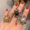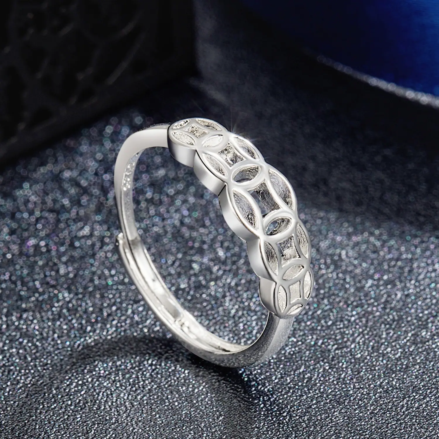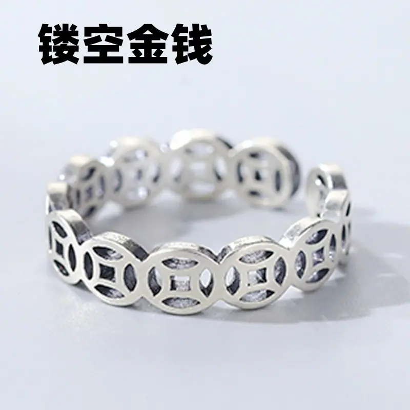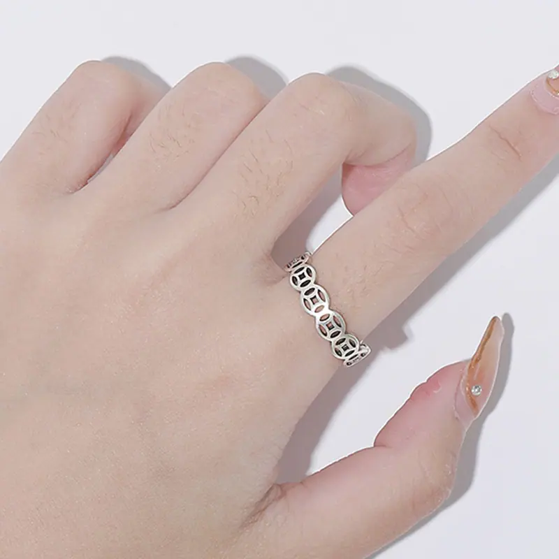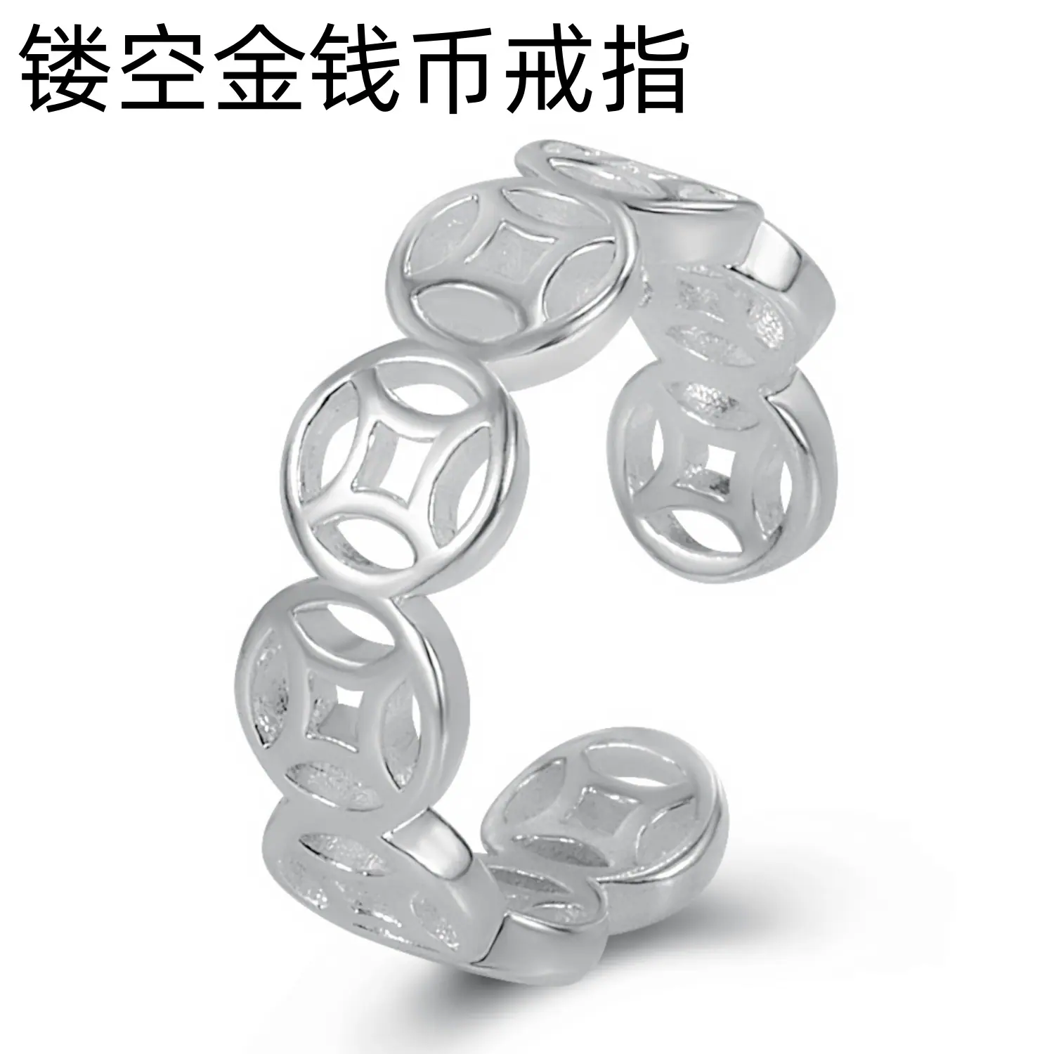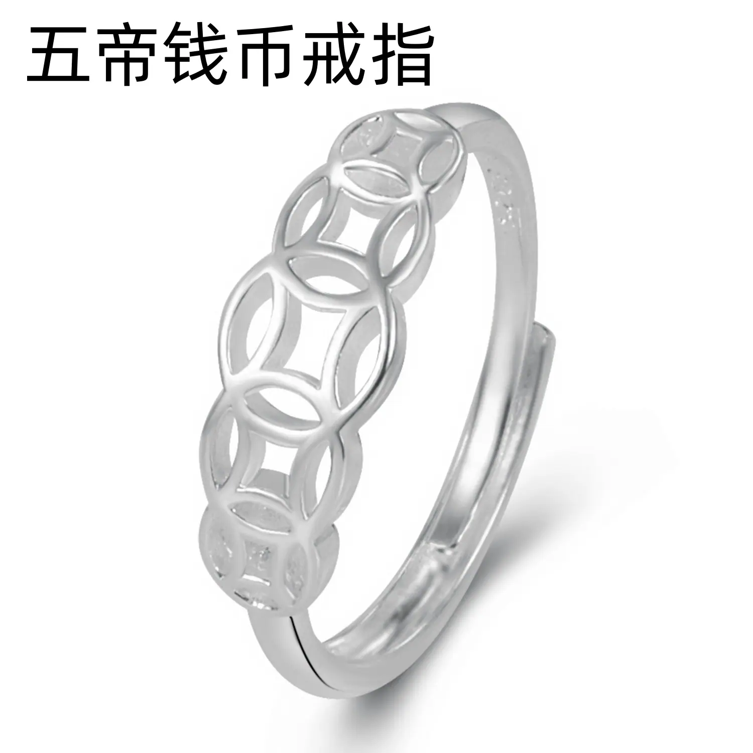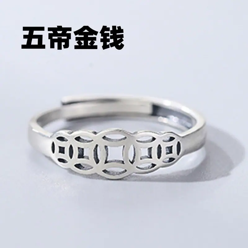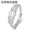 Anillo retro hueco de moneda de oro, moneda de cobre de cinco emperadores, anillo creativo de estilo étnico, anillo con forma de moneda de oro de la suerte