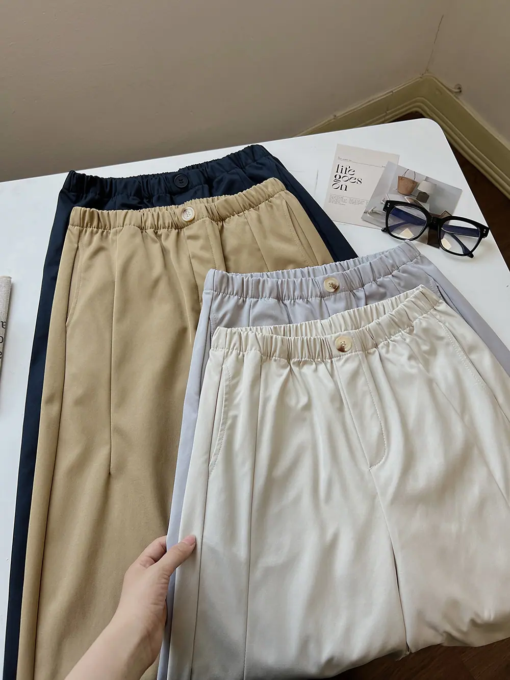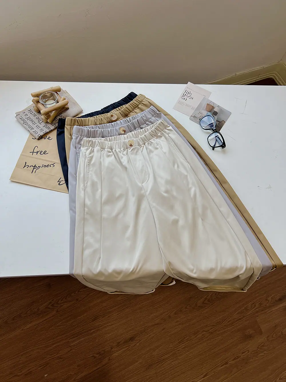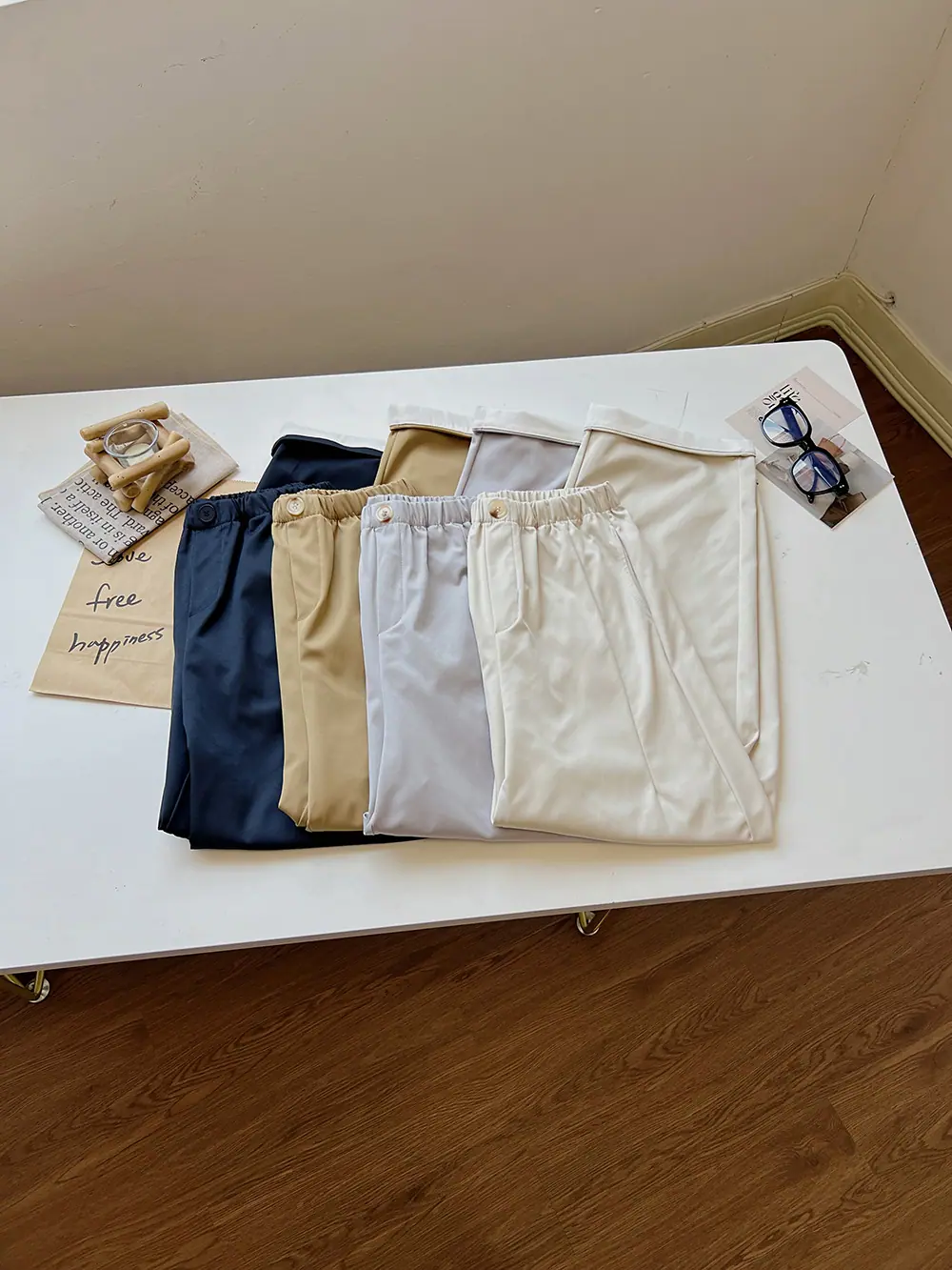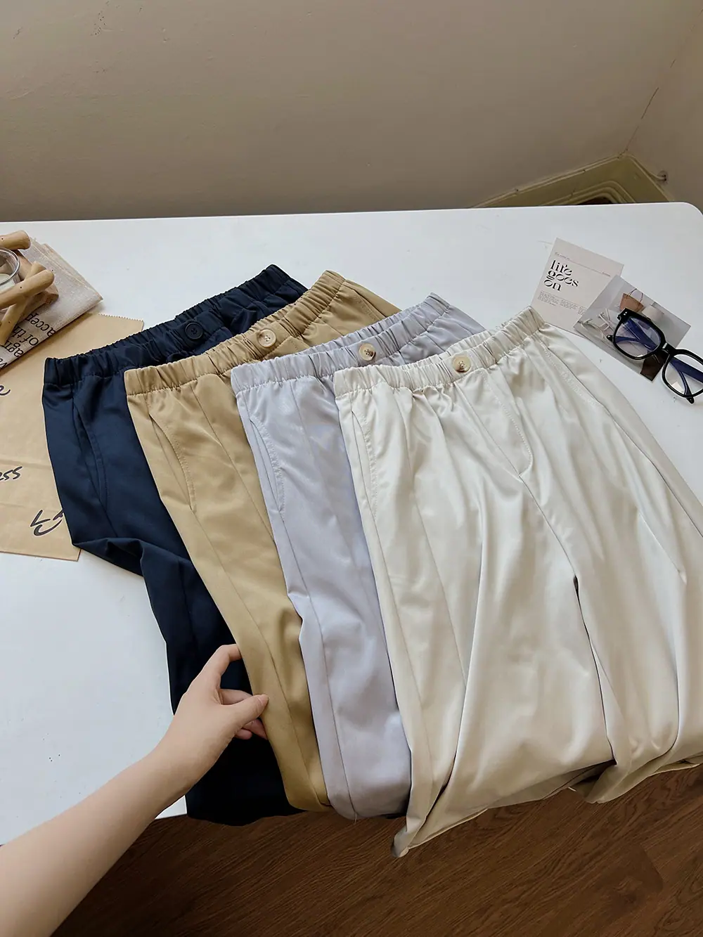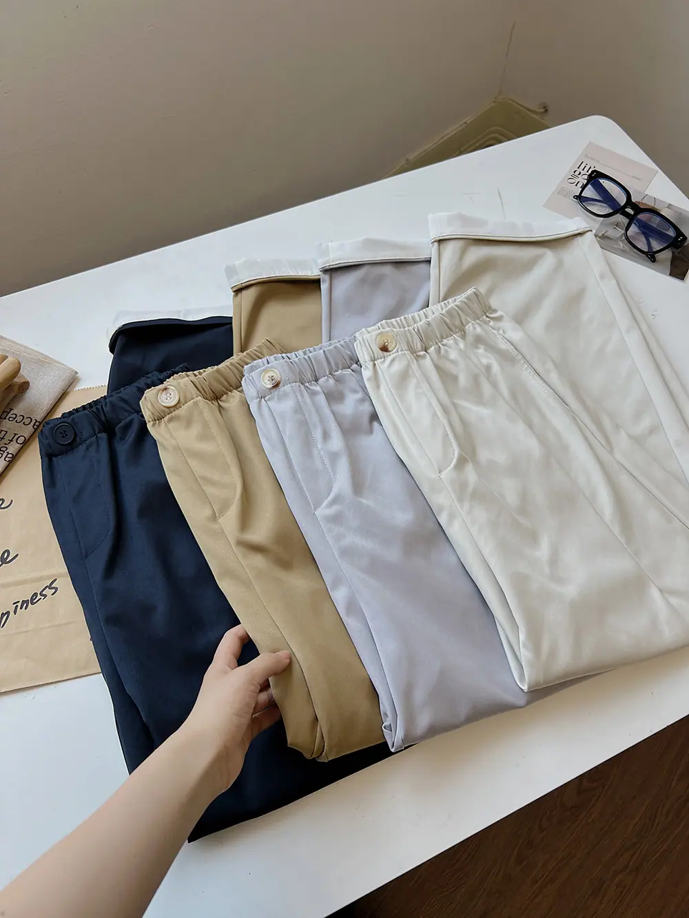 Traje de Nueve Piezas Pantalones de Pierna Ancha para Mujer Verano Delgada 2025 Nuevo Estilo Petite Casual Verano Suelto Pantalones Rectos al Mayoreo