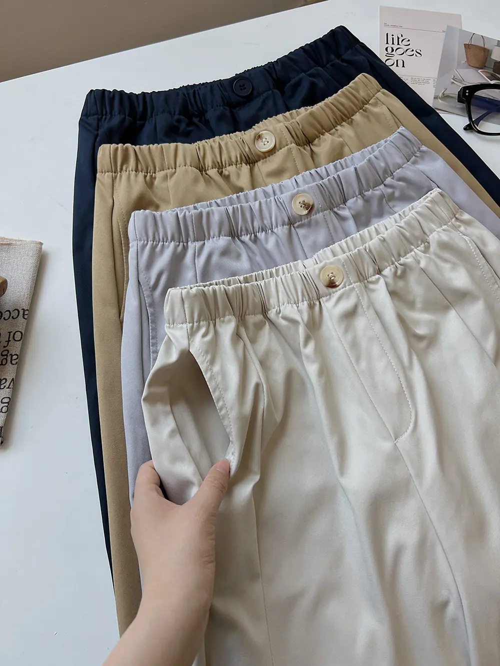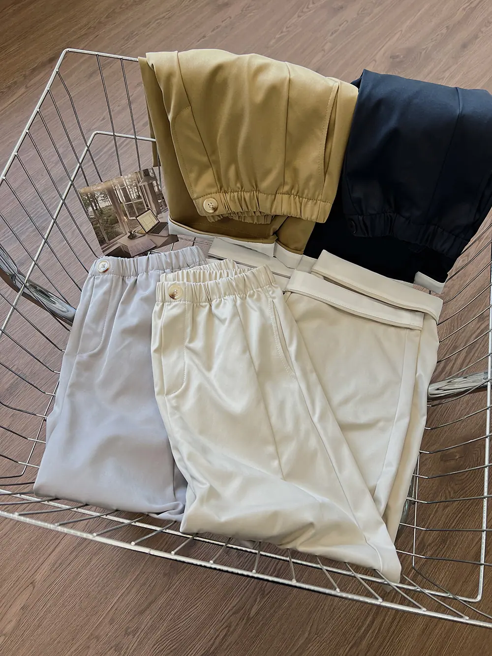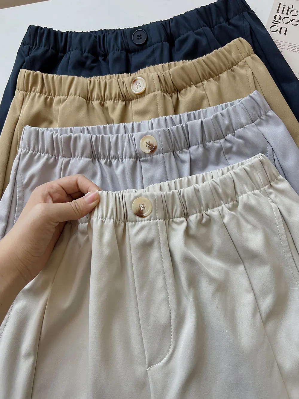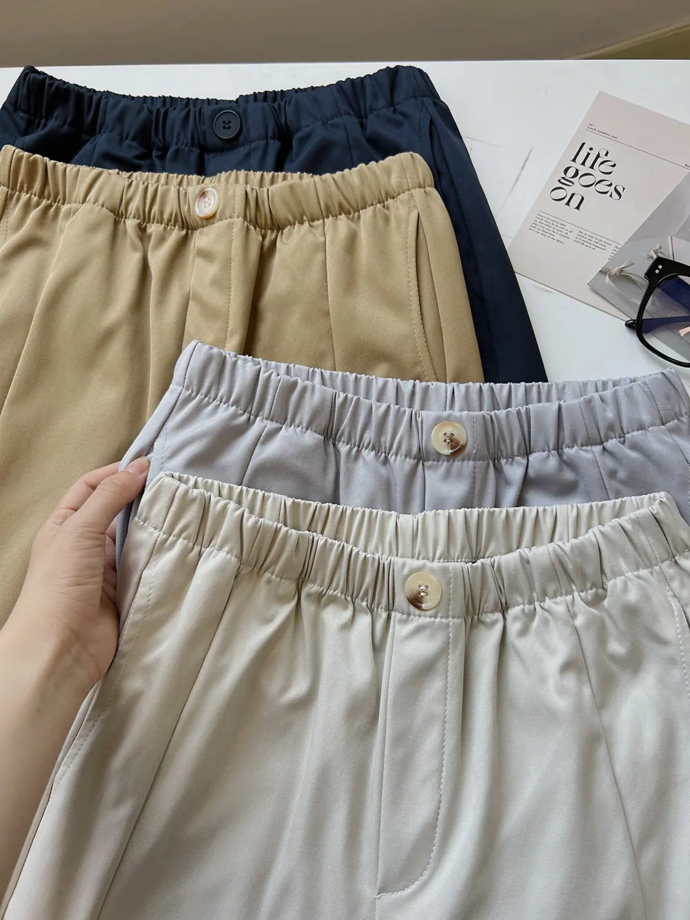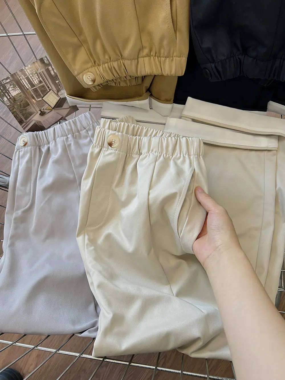 Traje de Nueve Piezas Pantalones de Pierna Ancha para Mujer Verano Delgada 2025 Nuevo Estilo Petite Casual Verano Suelto Pantalones Rectos al Mayoreo