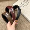 Diadema Ancha de Cuero PU Retro de Alta Gama Estilo Coreano con Corona Alta, Diadema de Esponja Cóncava-Convexa, Lazo para el Cabello de Perlas, Pasador para Mujeres
