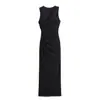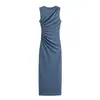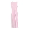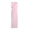 Ropa de Mujer Transfronteriza 2024 Verano Nuevo Moda Europea y Americana Vestido Midi Slim sin Mangas con Decoración Plisada