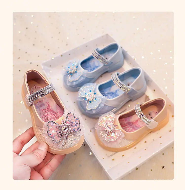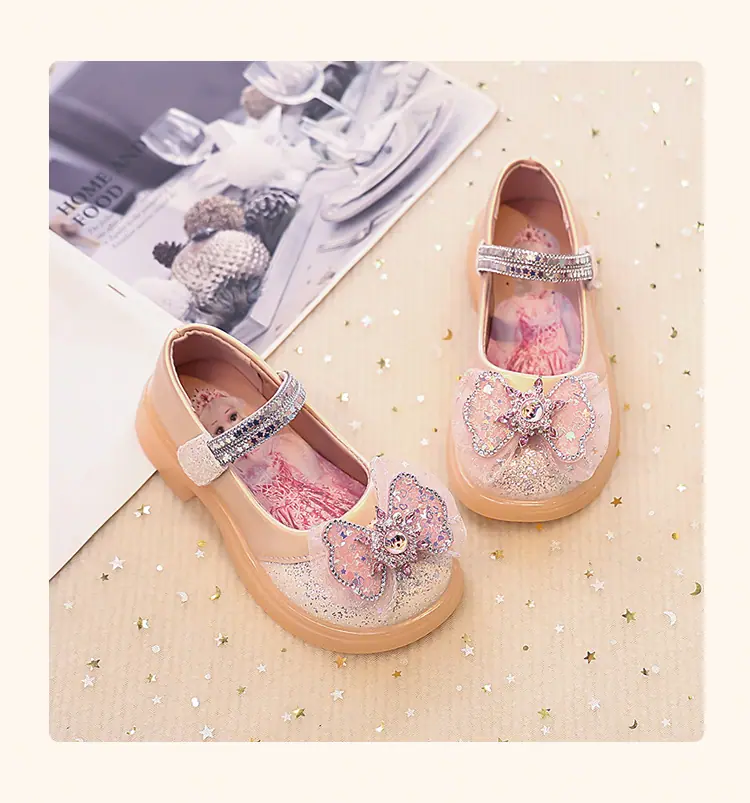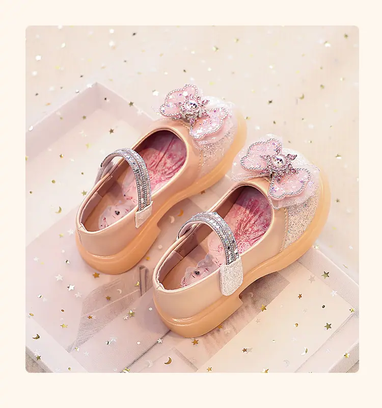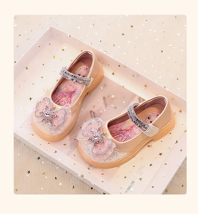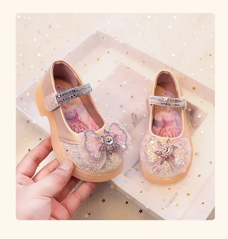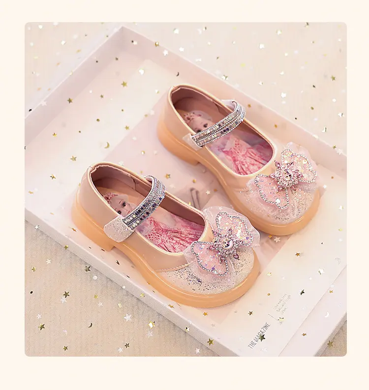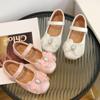Zapatos de Princesa para Niñas 2025 Nuevo Estilo Coreano Lazo Zapatos Individuales de Suela Blanda para Niñas Zapatos Pequeños de Cristal de Cuero para Niños