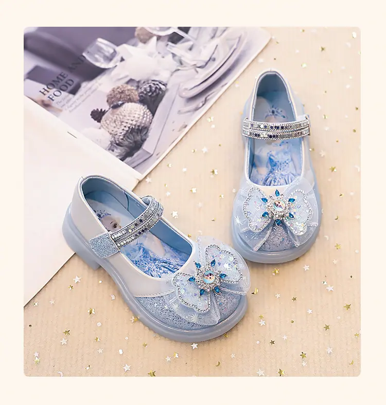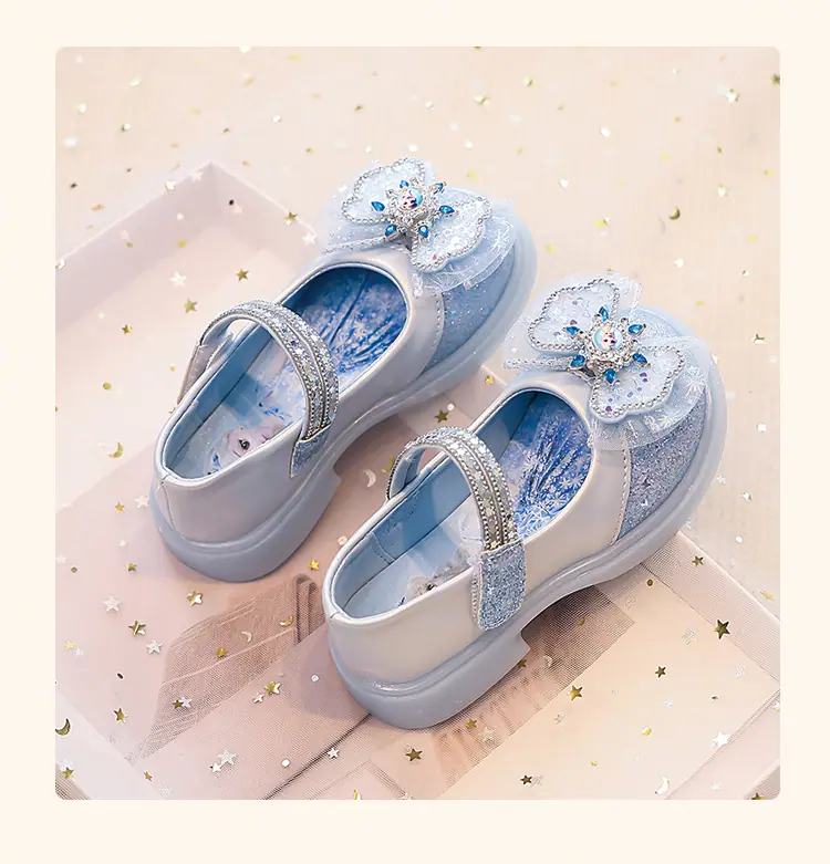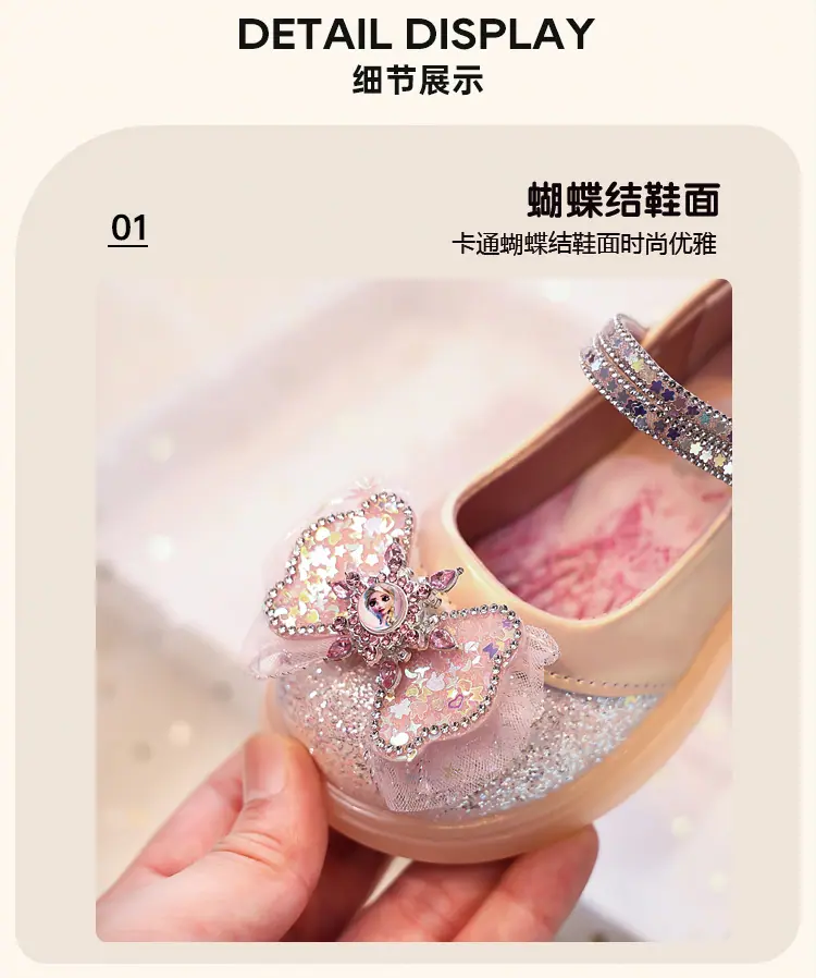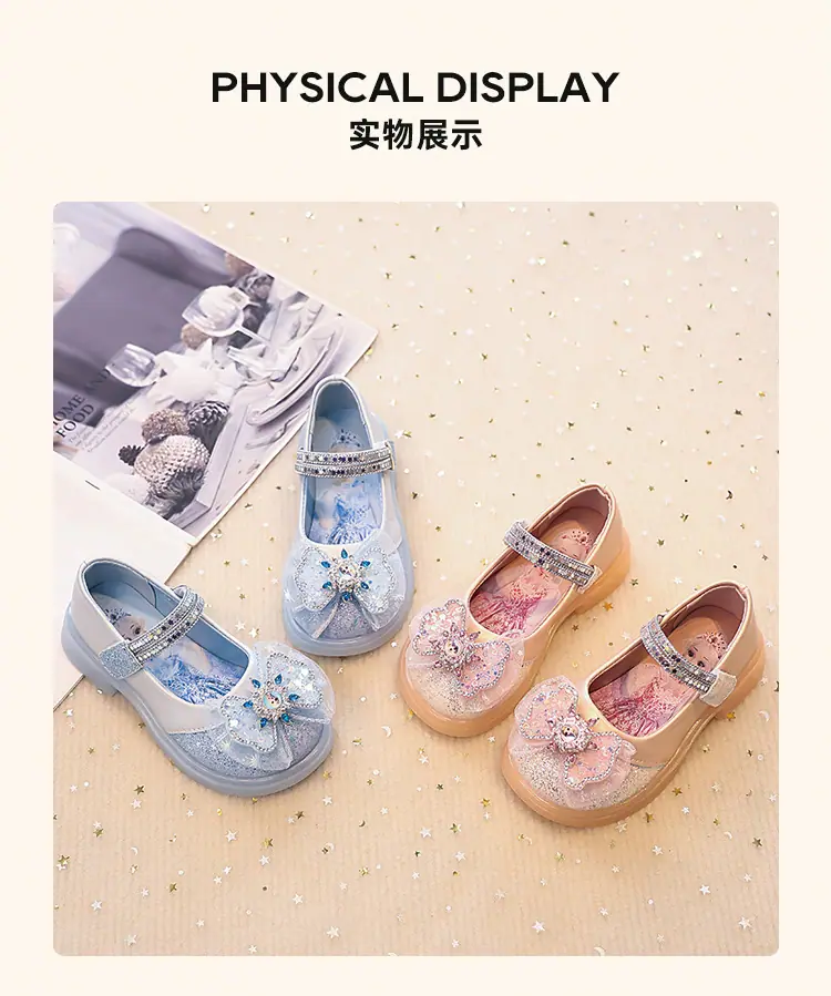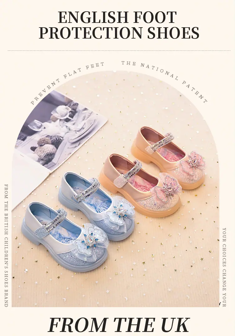 Zapatos de Princesa para Niñas 2025 Nuevo Estilo Coreano Lazo Zapatos Individuales de Suela Blanda para Niñas Zapatos Pequeños de Cristal de Cuero para Niños