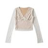 Personalidad delgada pura sexy encaje cuello en V top delgado para mujer otoño nuevo manga corta larga camiseta básica al por mayor