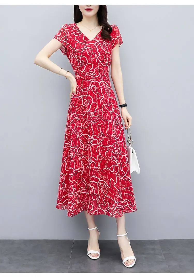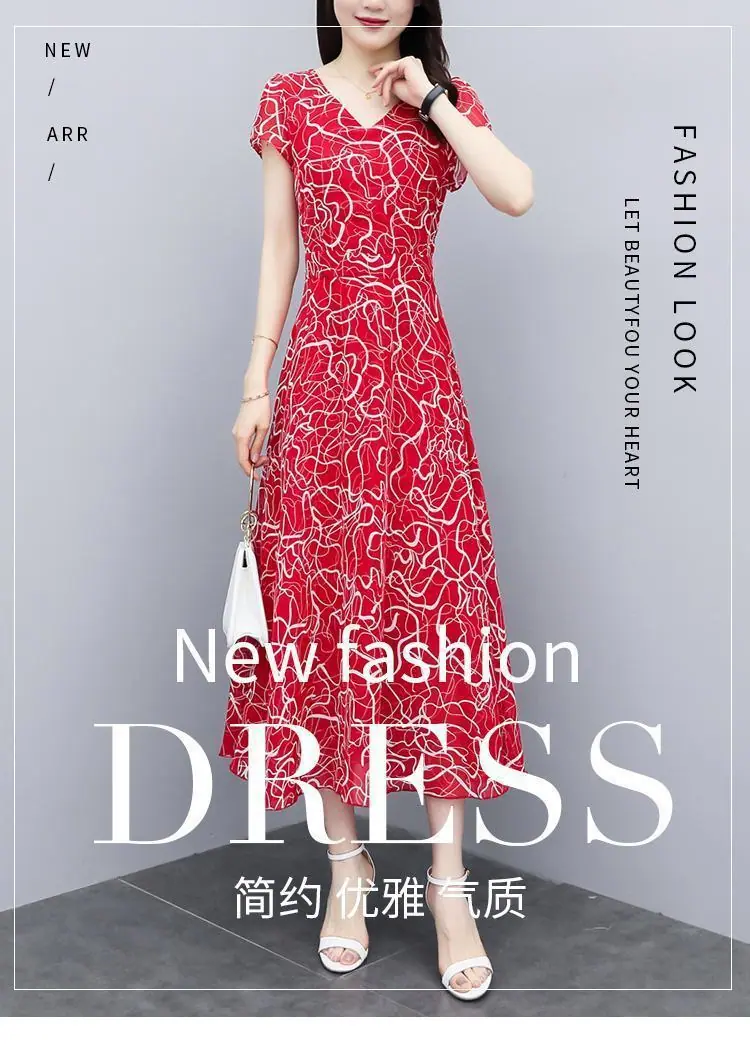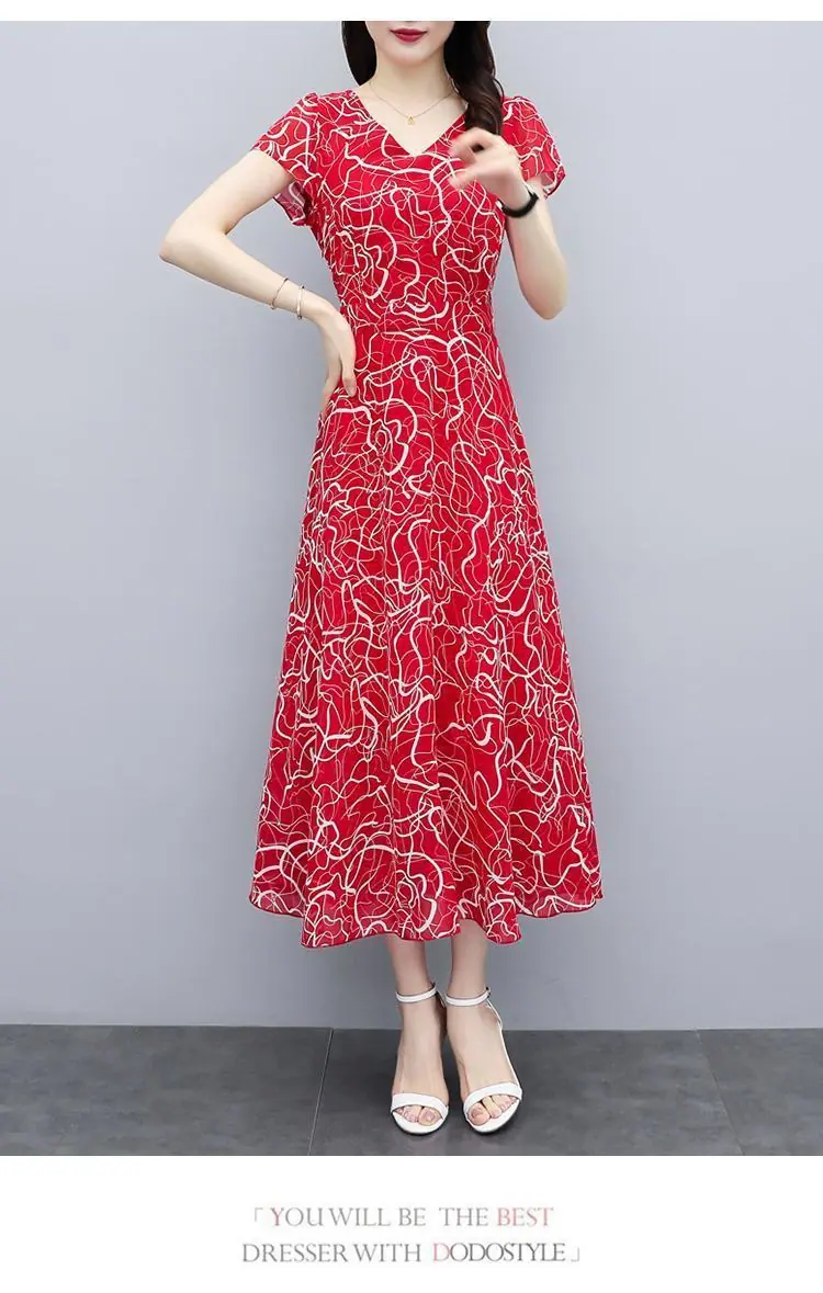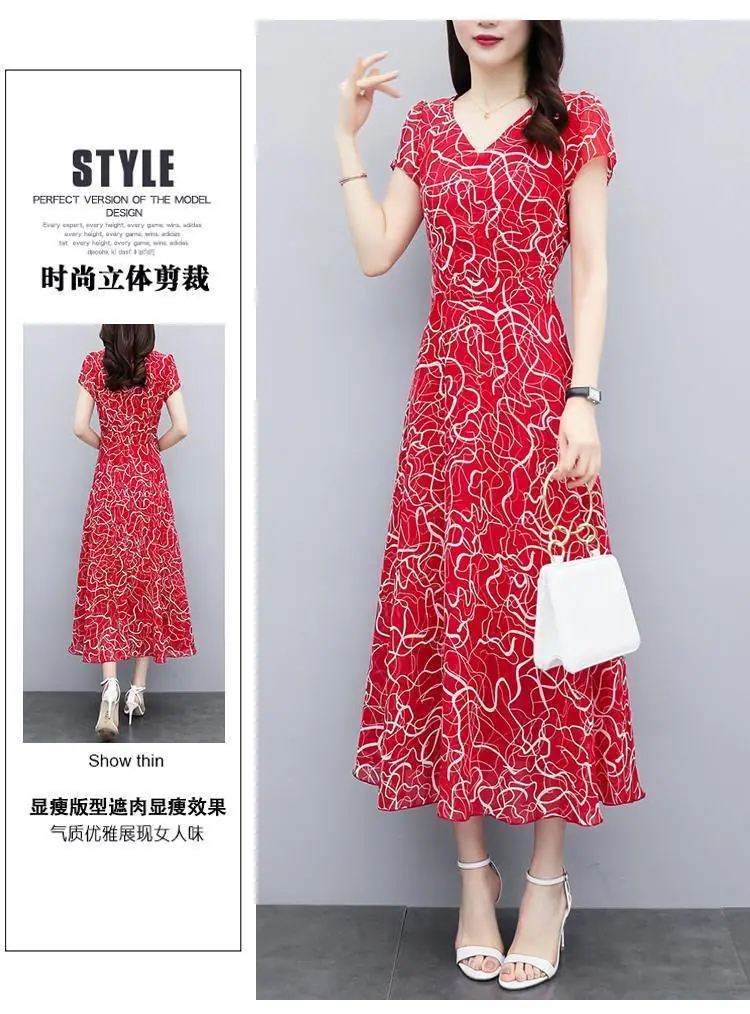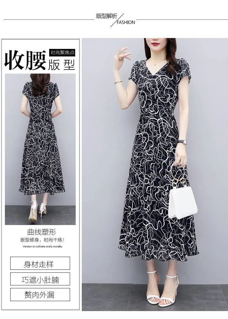 Verano Nuevo Vestido Floral para Mujer Manga Corta Nuevo Cubre Vientre Adelgazante Talla Grande Suelto