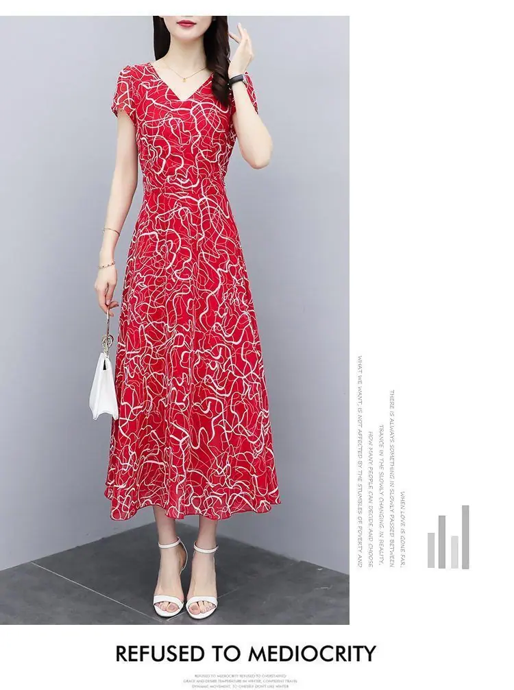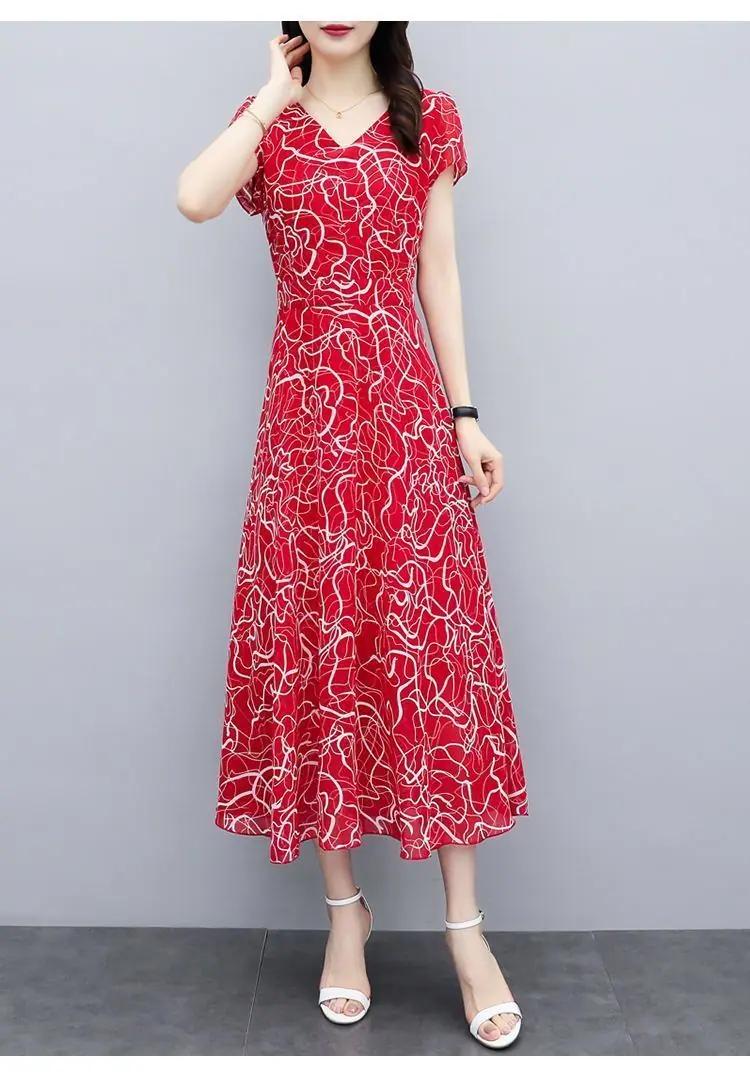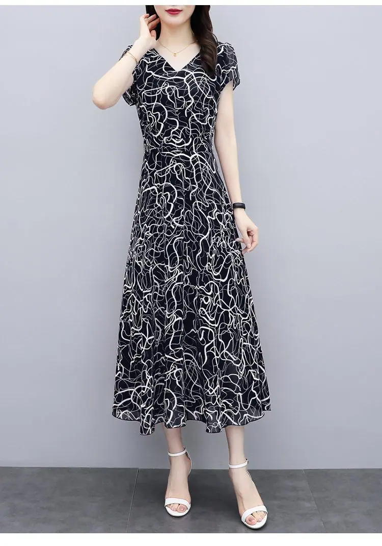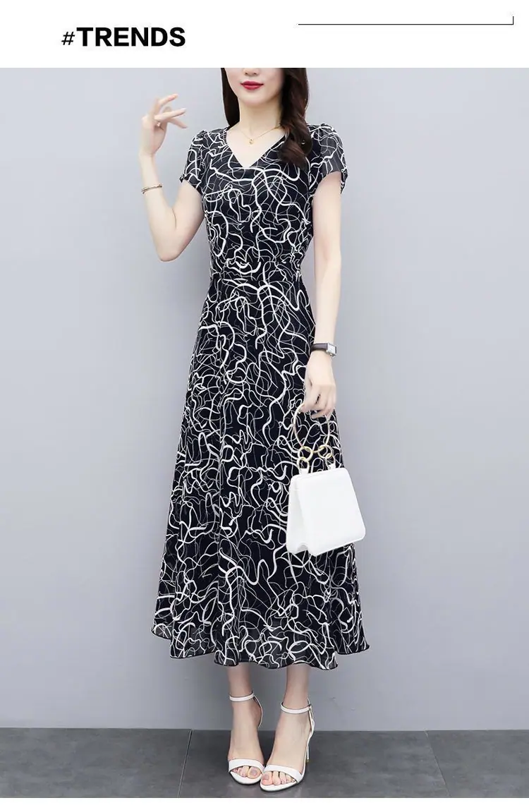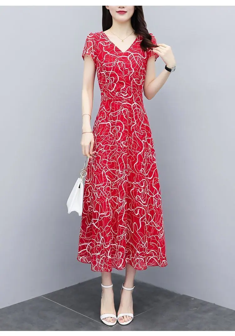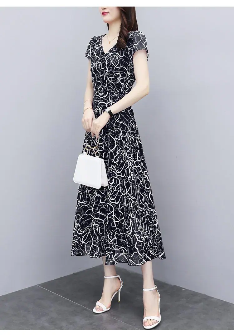 Verano Nuevo Vestido Floral para Mujer Manga Corta Nuevo Cubre Vientre Adelgazante Talla Grande Suelto