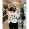 Playera de Manga Larga con Cuello en V y Letras Blancas Estilo Americano Pure Desire para Mujer, Top Camiseta Básica Corta Ajustada Dulce Picante para Principios de Otoño